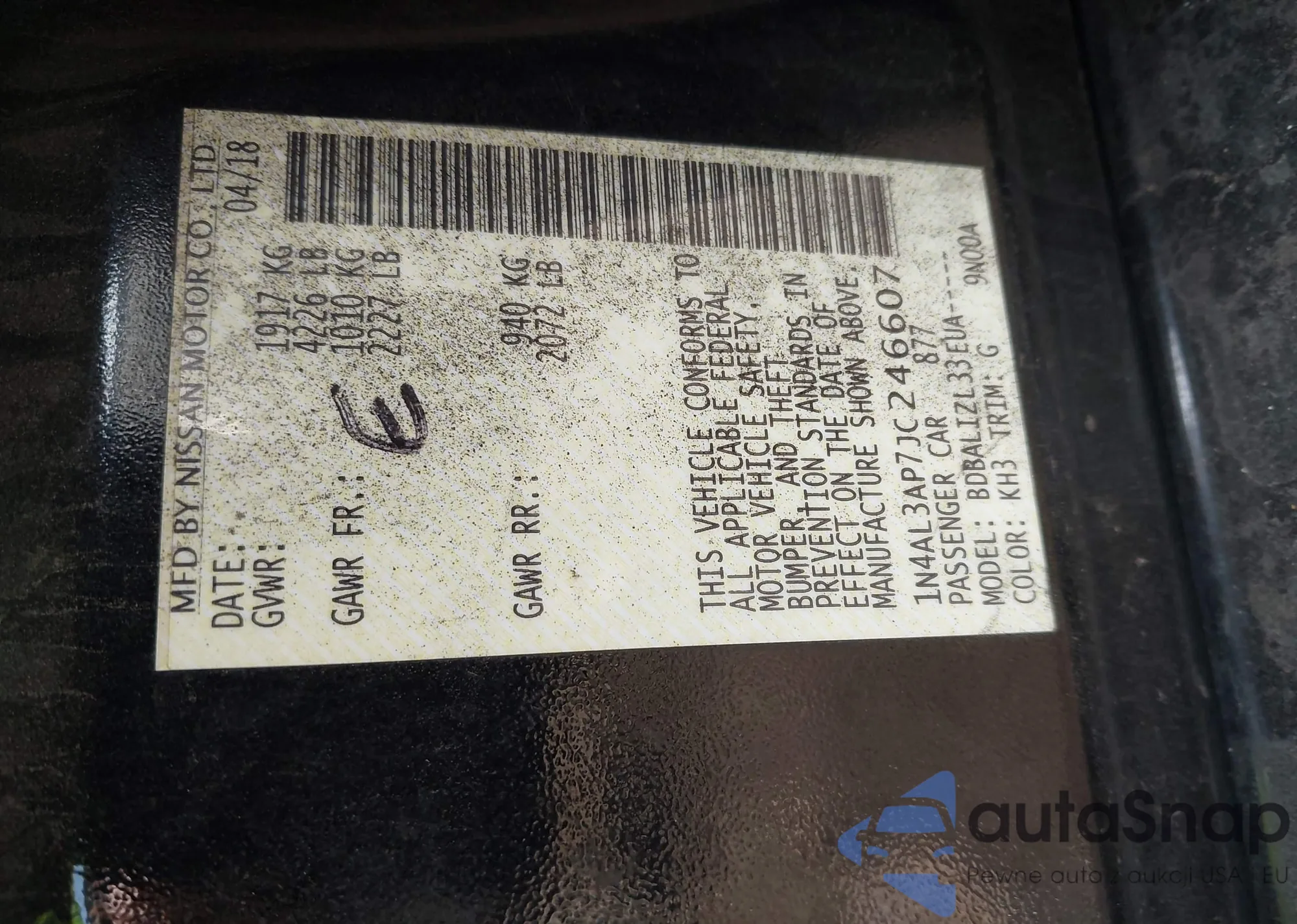 VIN: 1N4AL3AP7JC246607