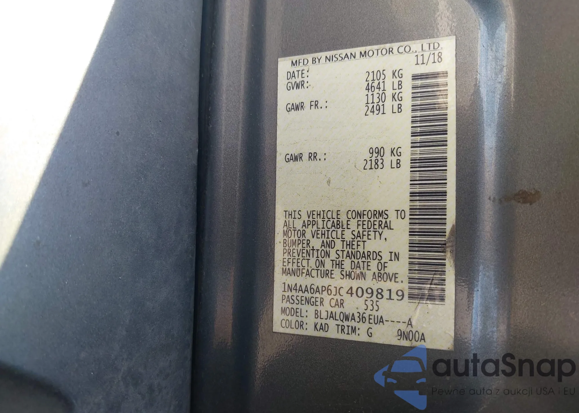 VIN: 1N4AA6AP6JC409819