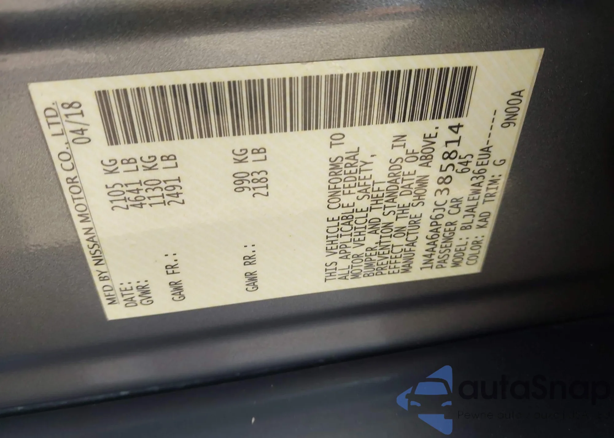 VIN: 1N4AA6AP6JC385814