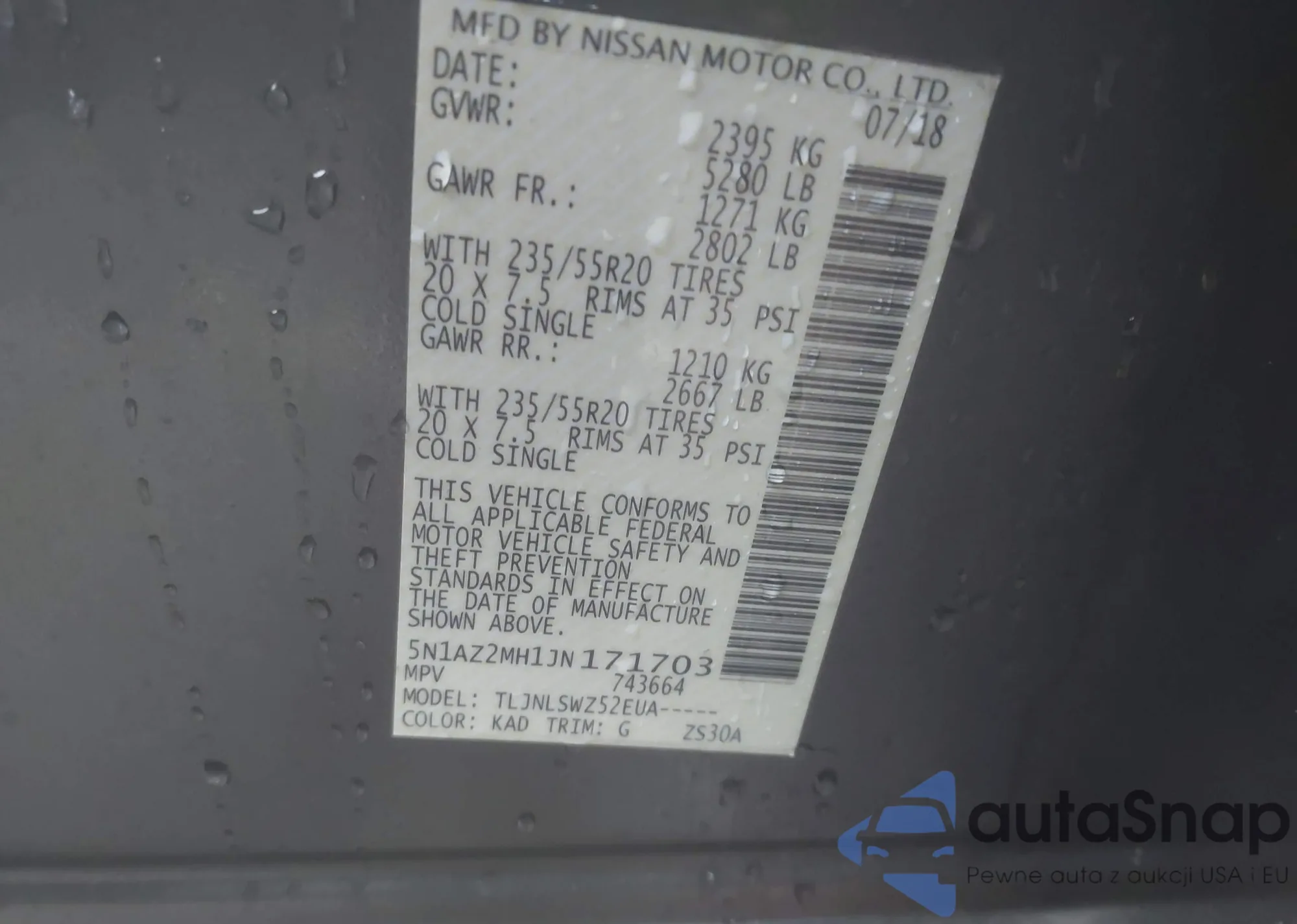 VIN: 5N1AZ2MH1JN171703