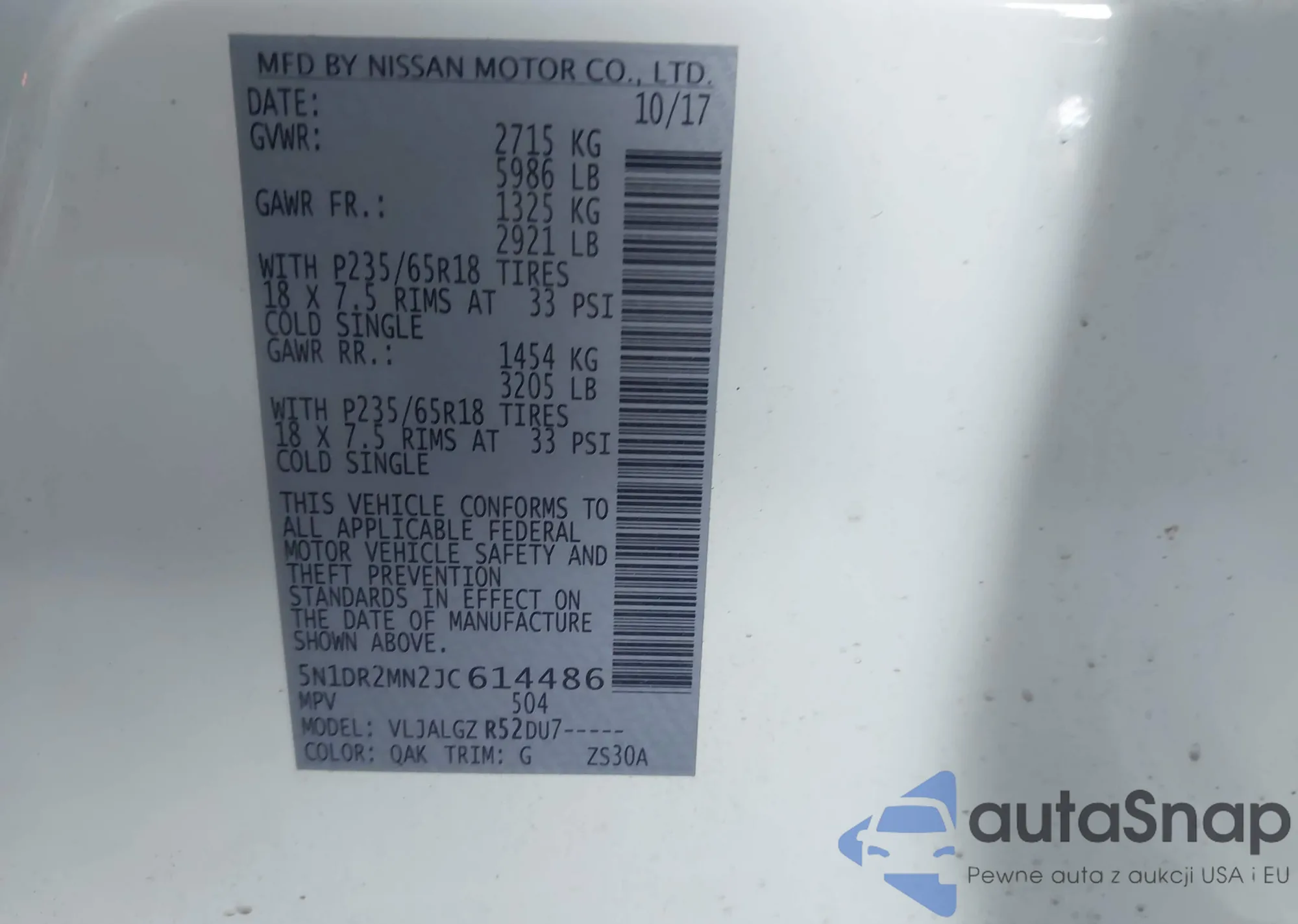 VIN: 5N1DR2MN2JC614486