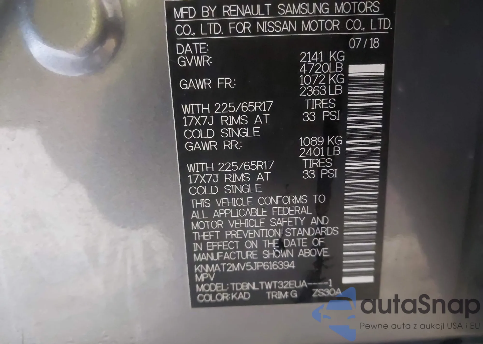 VIN: KNMAT2MV5JP616394