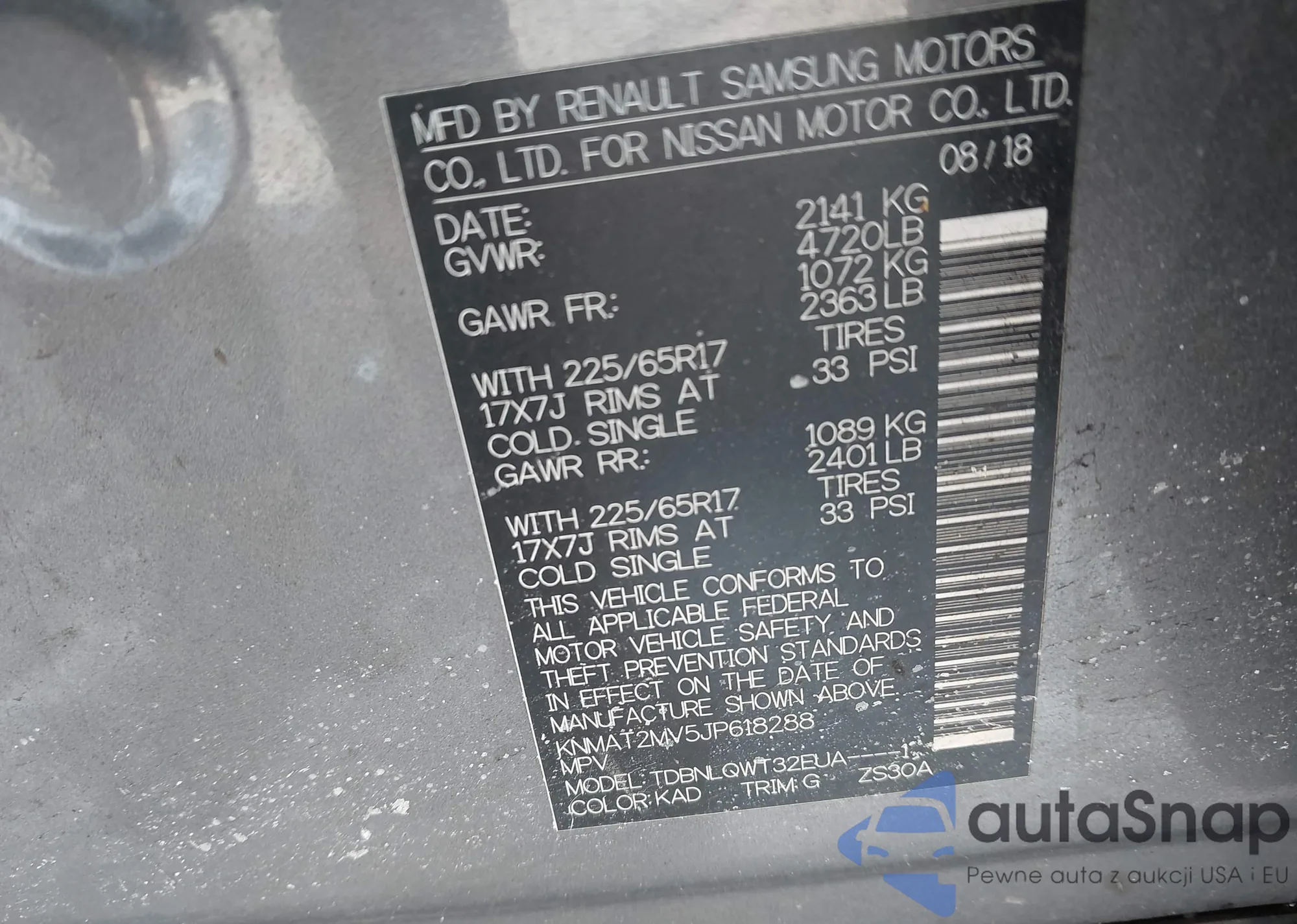 The car Nissan Rogue 2018 (VIN KNMAT2MV5JP618288) has not been auctioned before. The documents are clean, and the mileage matches or is below the market average. Sold by an insurance company – we recommend purchase. Delivery to the port will take approx. 6–8 weeks.