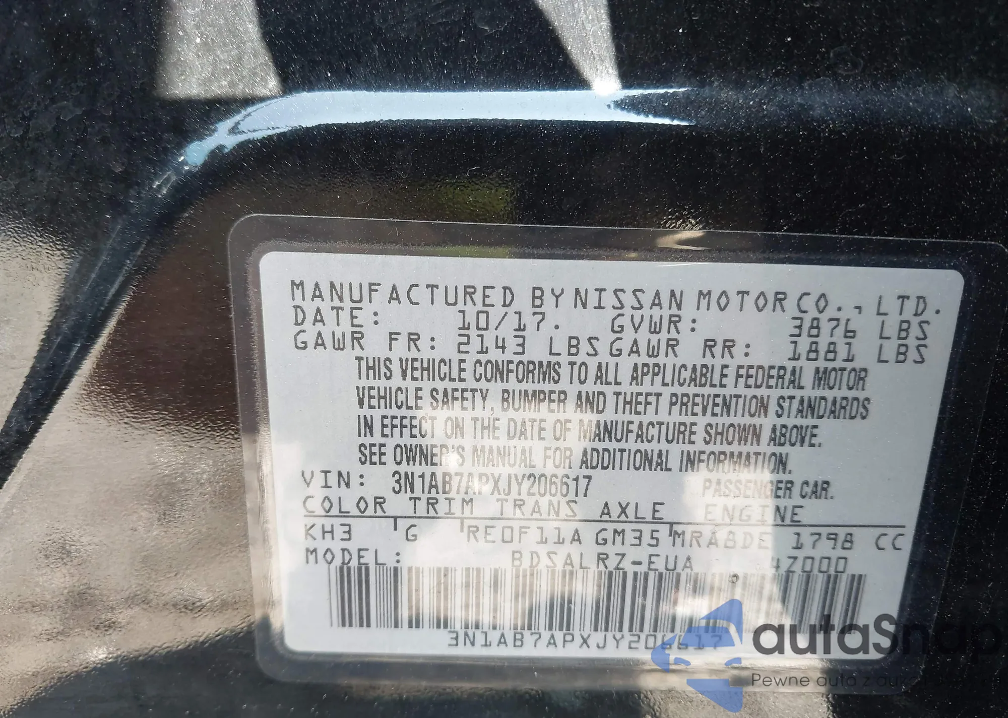 VIN: 3N1AB7APXJY206617