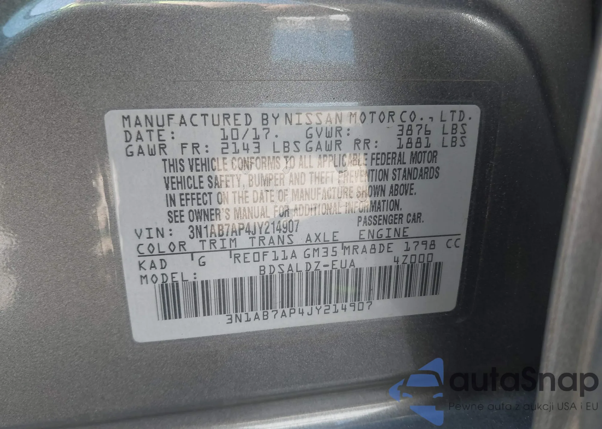VIN: 3N1AB7AP4JY214907