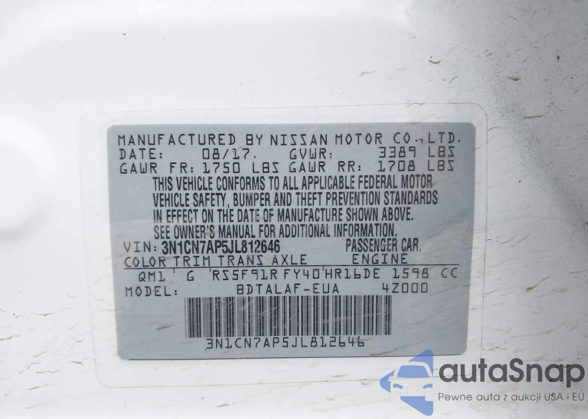 VIN: 3N1CN7AP5JL812646