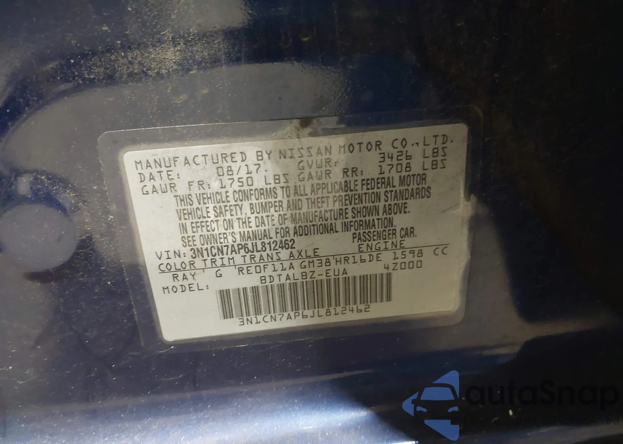 The car Nissan Versa 2018 (VIN 3N1CN7AP6JL812462) has not been auctioned before. The documents are clean, and the mileage matches or is below the market average. Sold by an insurance company – we recommend purchase. Delivery to the port will take approx. 6–8 weeks.