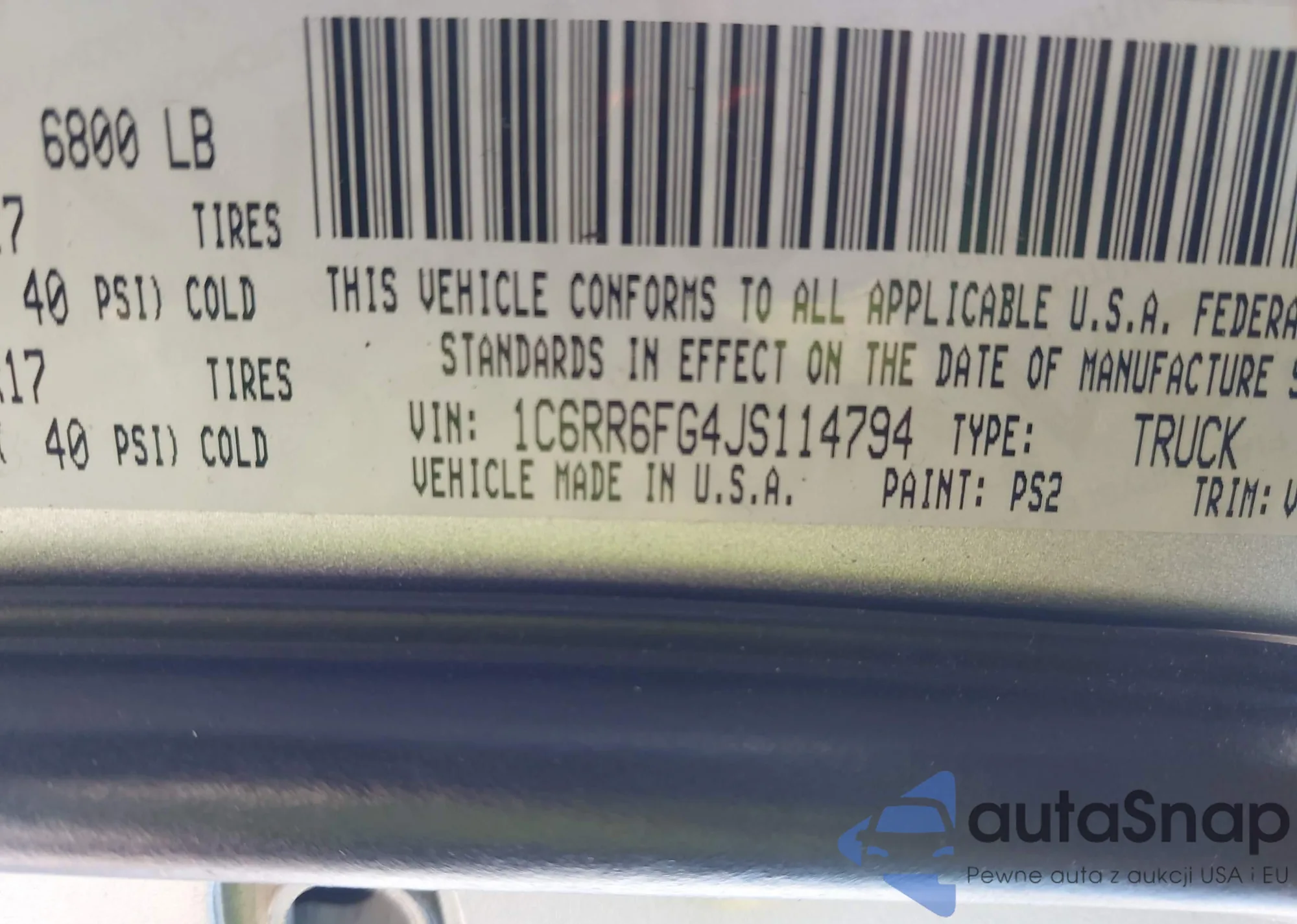 • VIN: 1C6RR6FG4JS114794