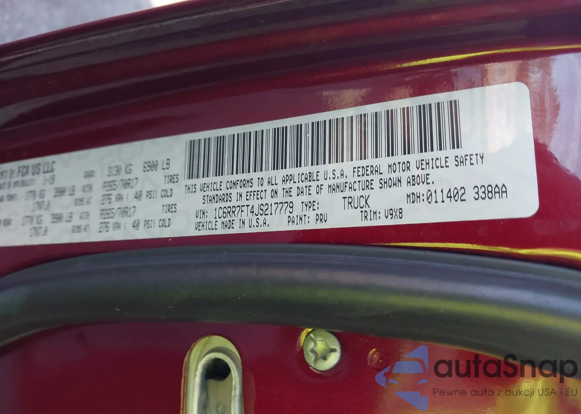 VIN: 1C6RR7FT4JS217779