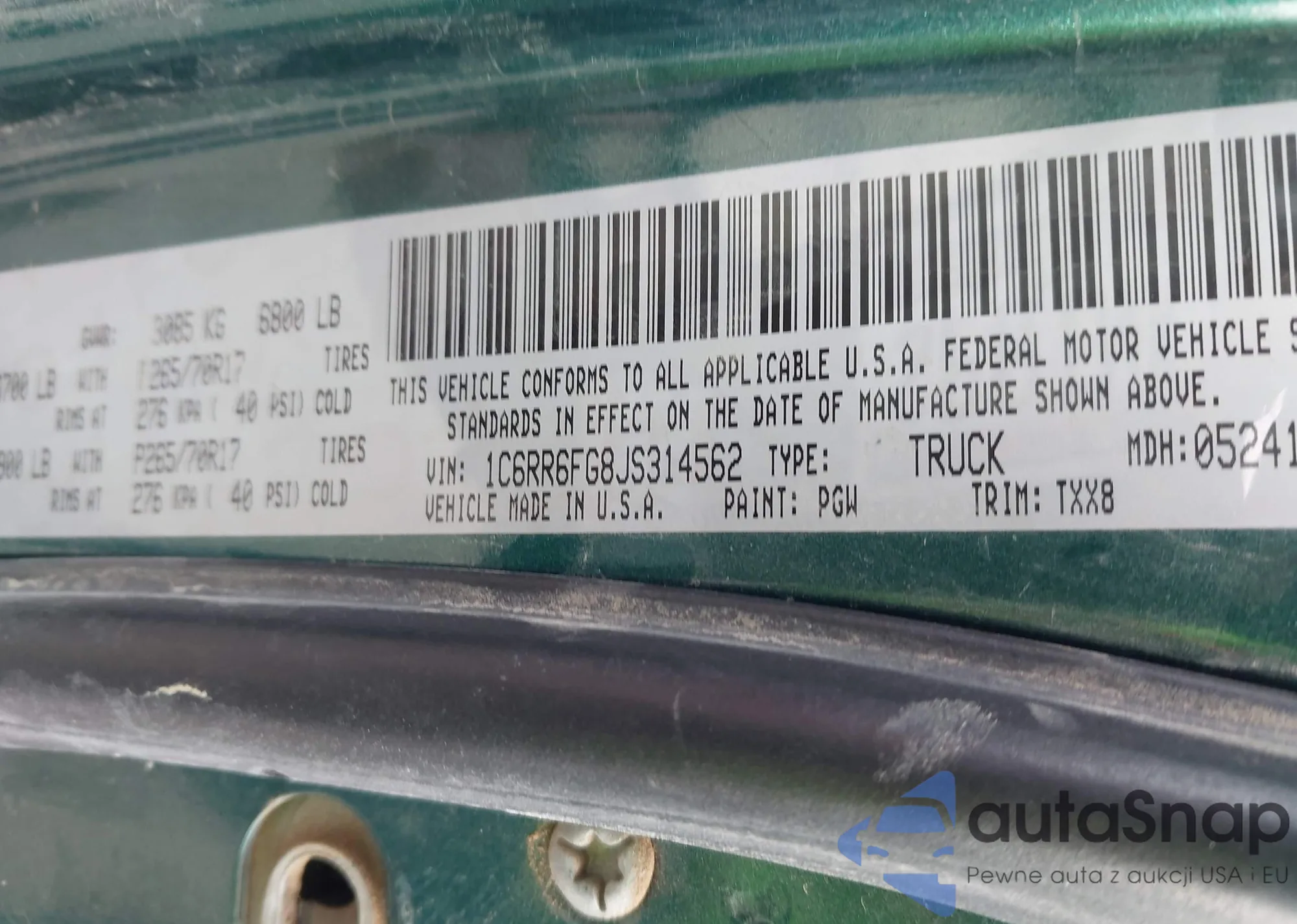 VIN: 1C6RR6FG8JS314562