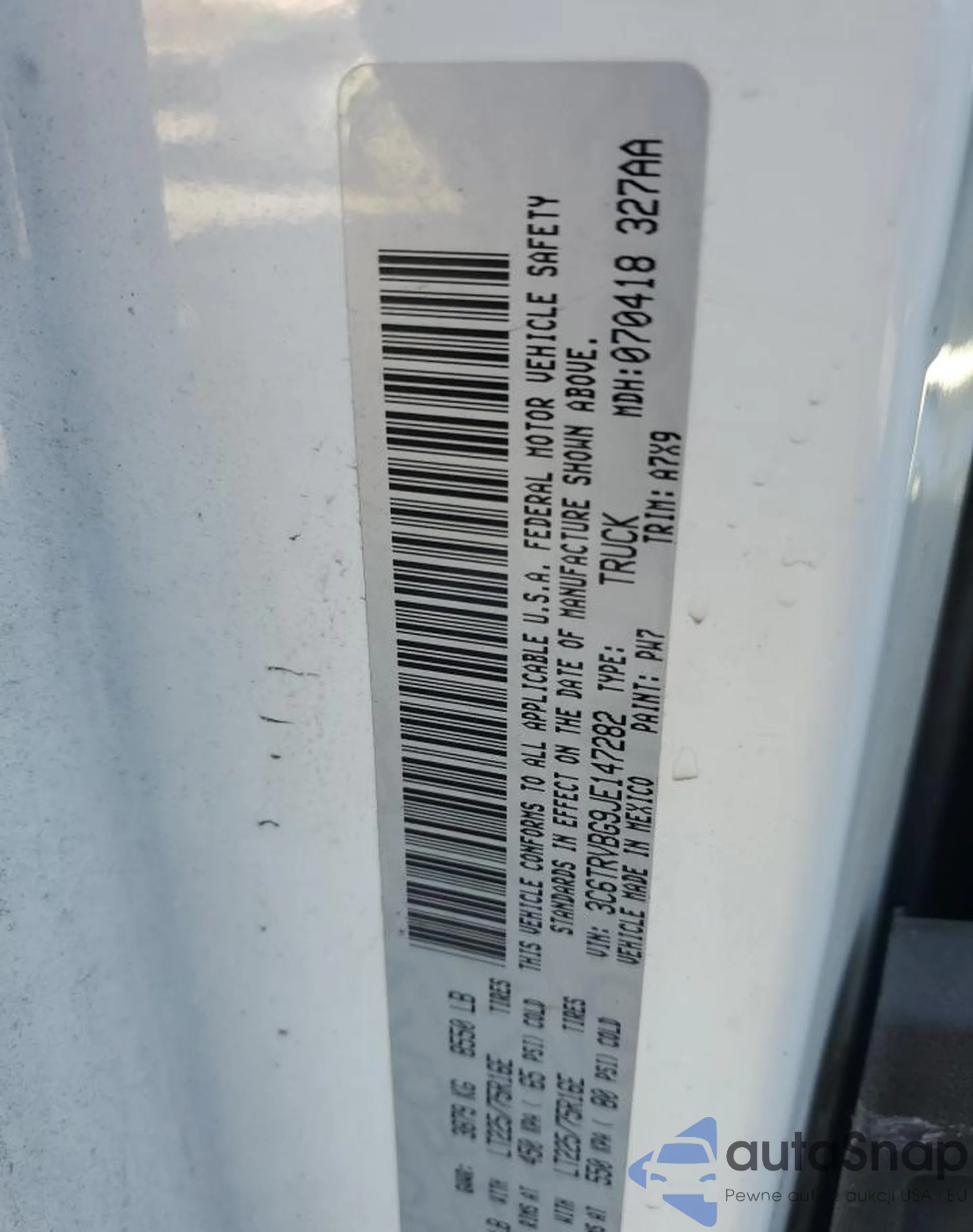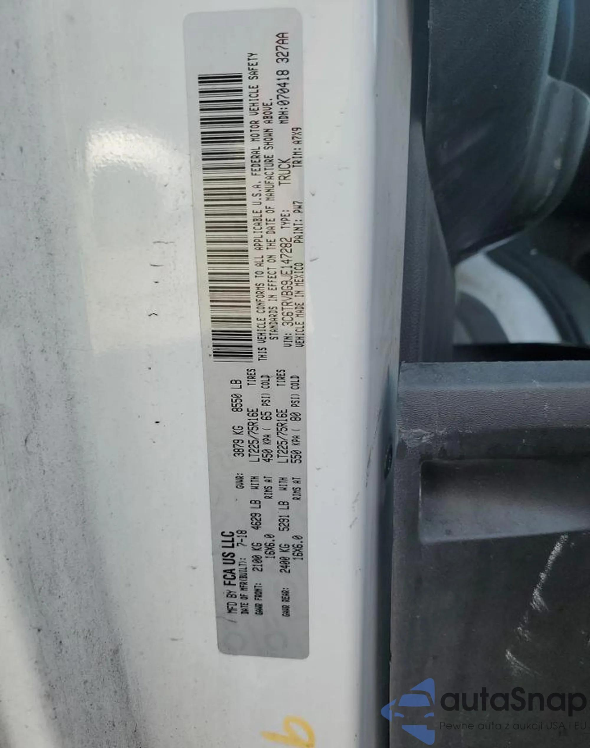 The car RAM ProMaster City 2018 (VIN 3C6TRVBG9JE147282) is sold by an unverified seller. We recommend checking the Carfax report and confirming registration possibilities before purchase.