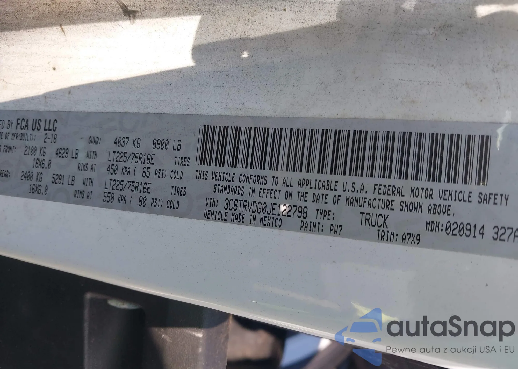 VIN: 3C6TRVDG0JE122798