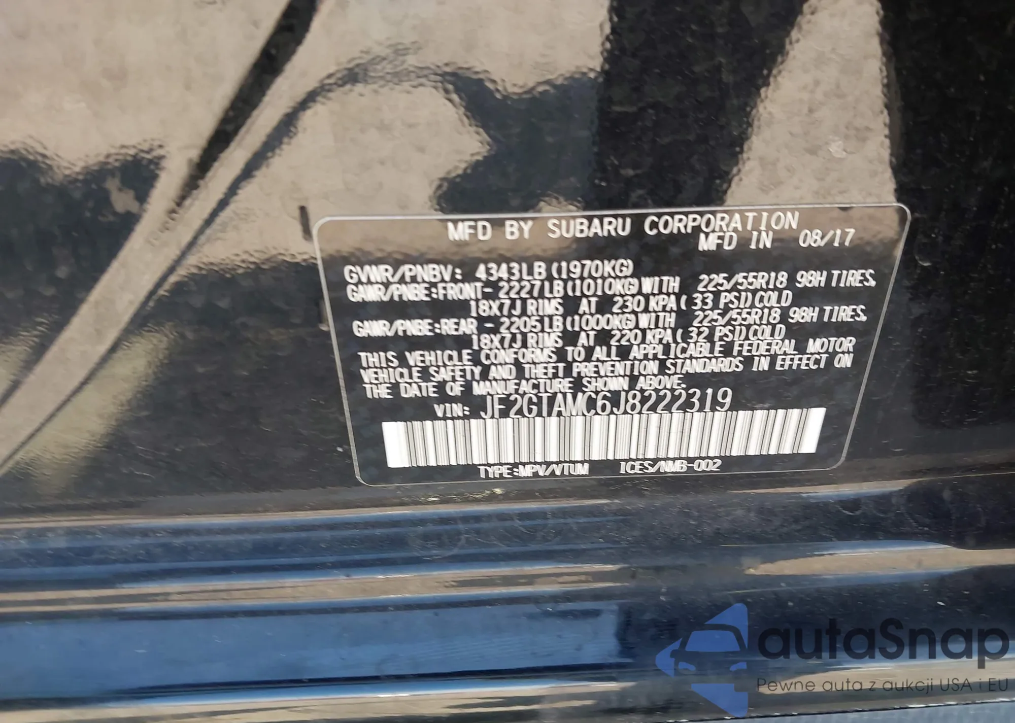 VIN: JF2GTAMC6J8222319