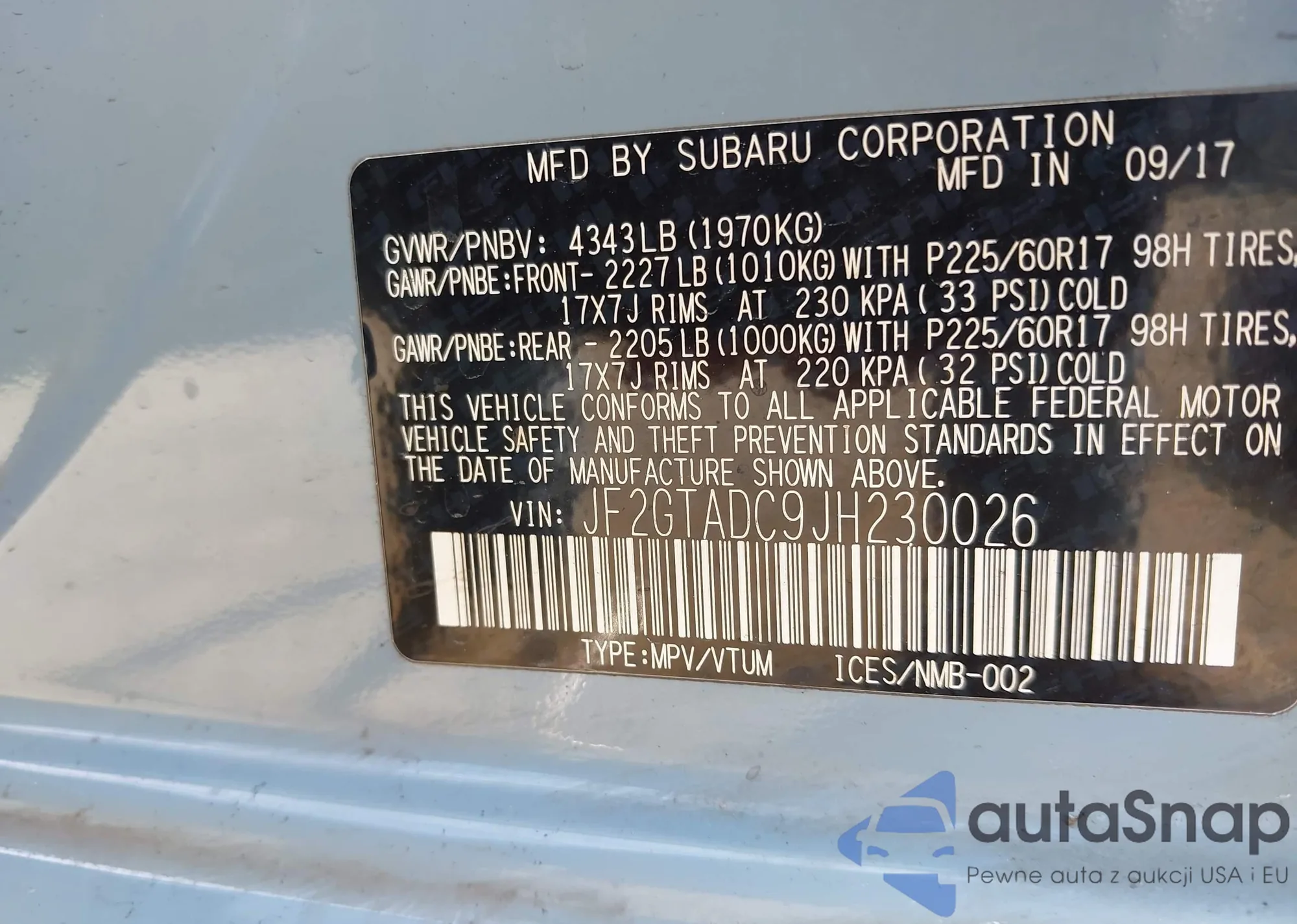 VIN: JF2GTADC9JH230026
