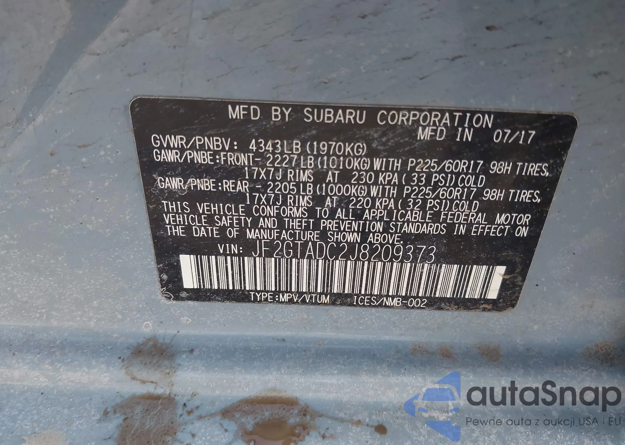 VIN: JF2GTADC2J8209373