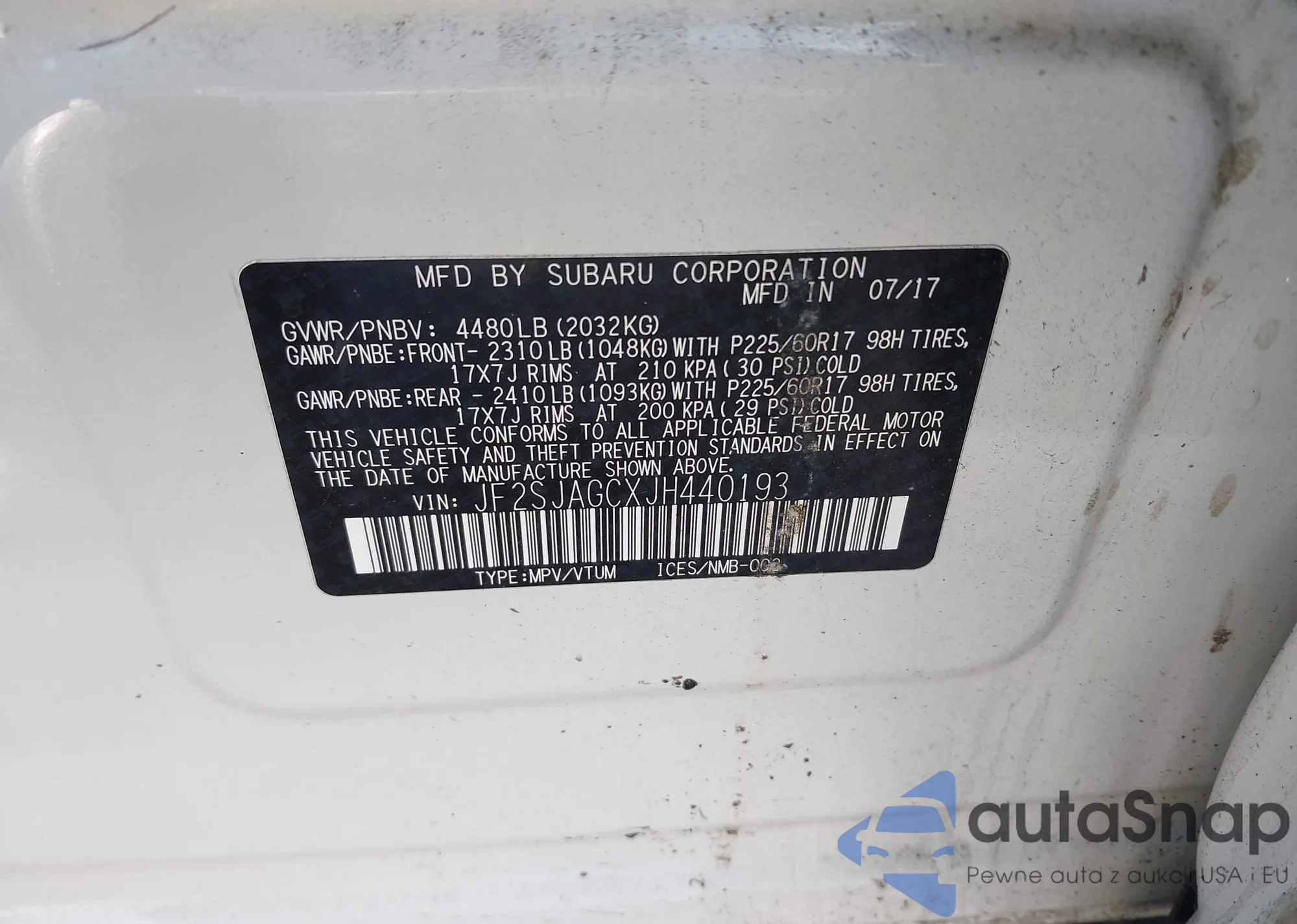 VIN: JF2SJAGCXJH440193