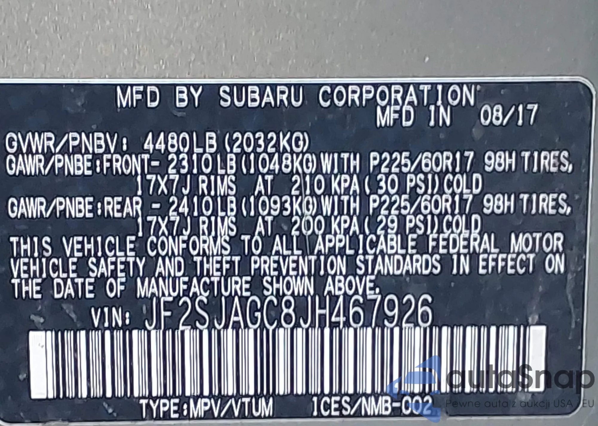 VIN: JF2SJAGC8JH467926