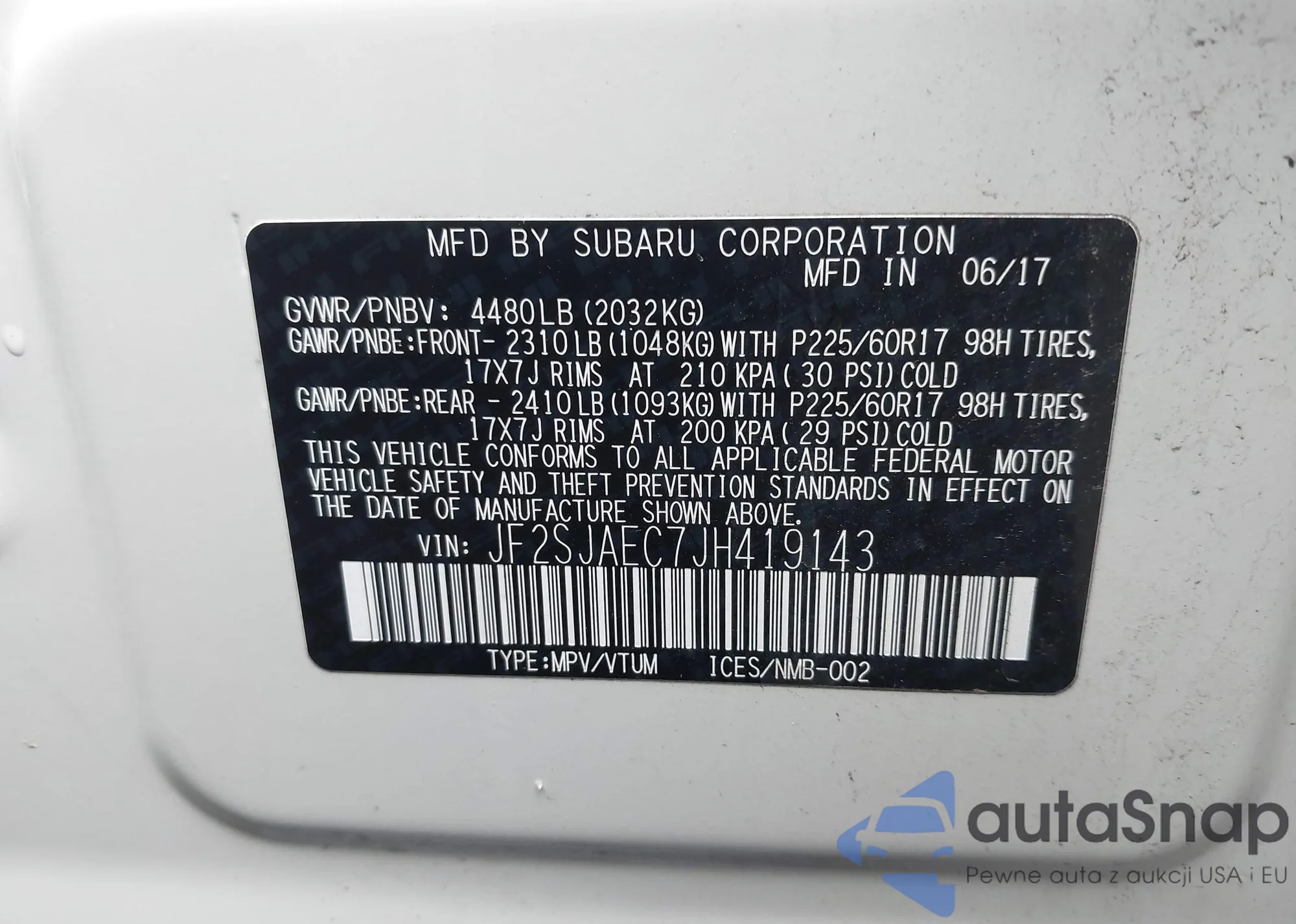 VIN: JF2SJAEC7JH419143
