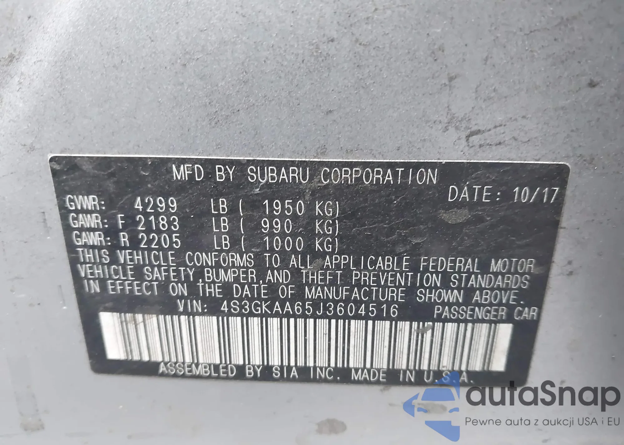 VIN: 4S3GKAA65J3604516