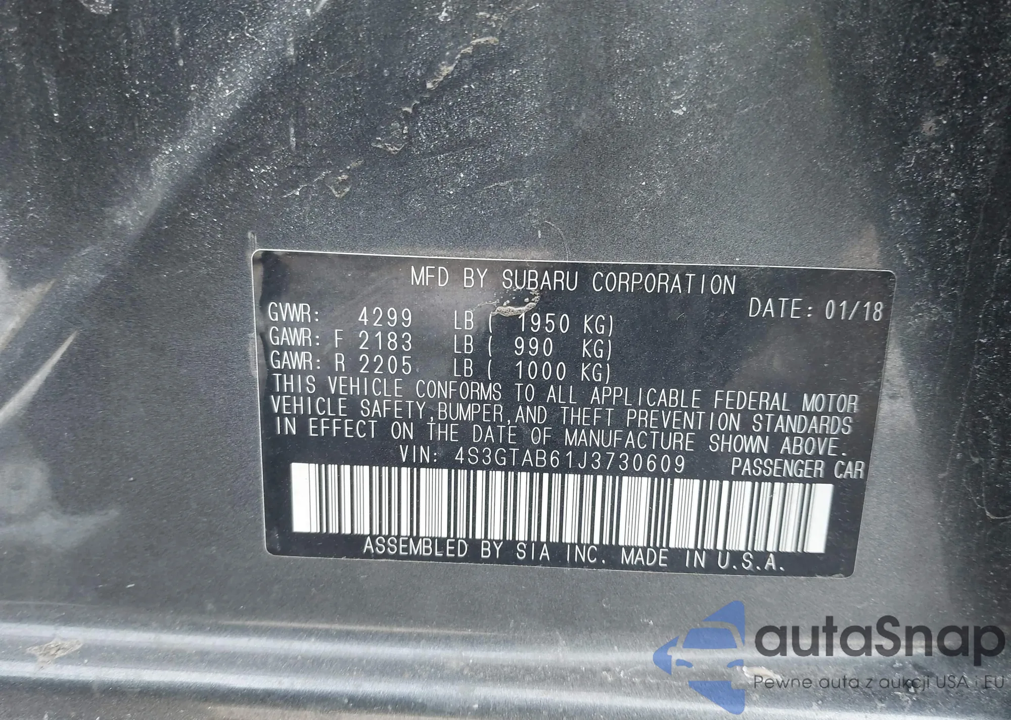 VIN: 4S3GTAB61J3730609