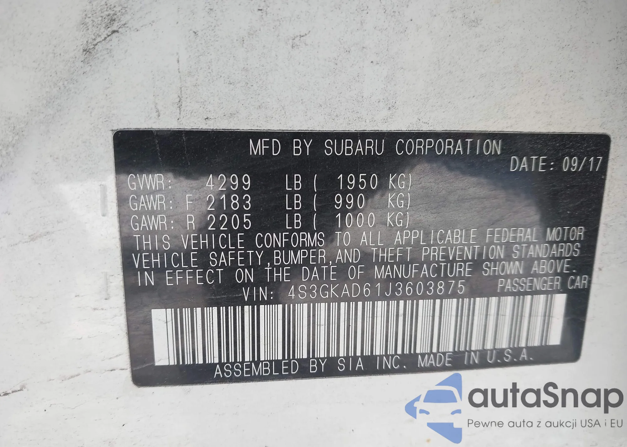 • VIN: 4S3GKAD61J3603875