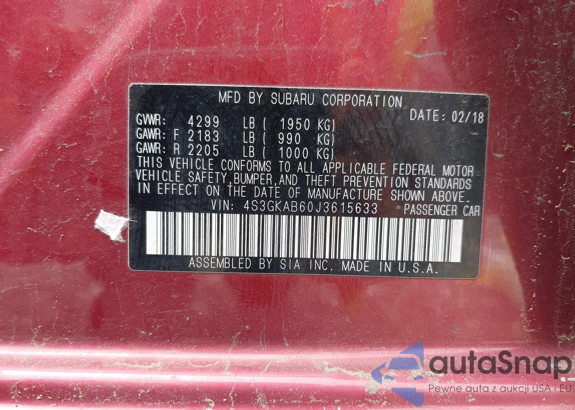 VIN: 4S3GKAB60J3615633