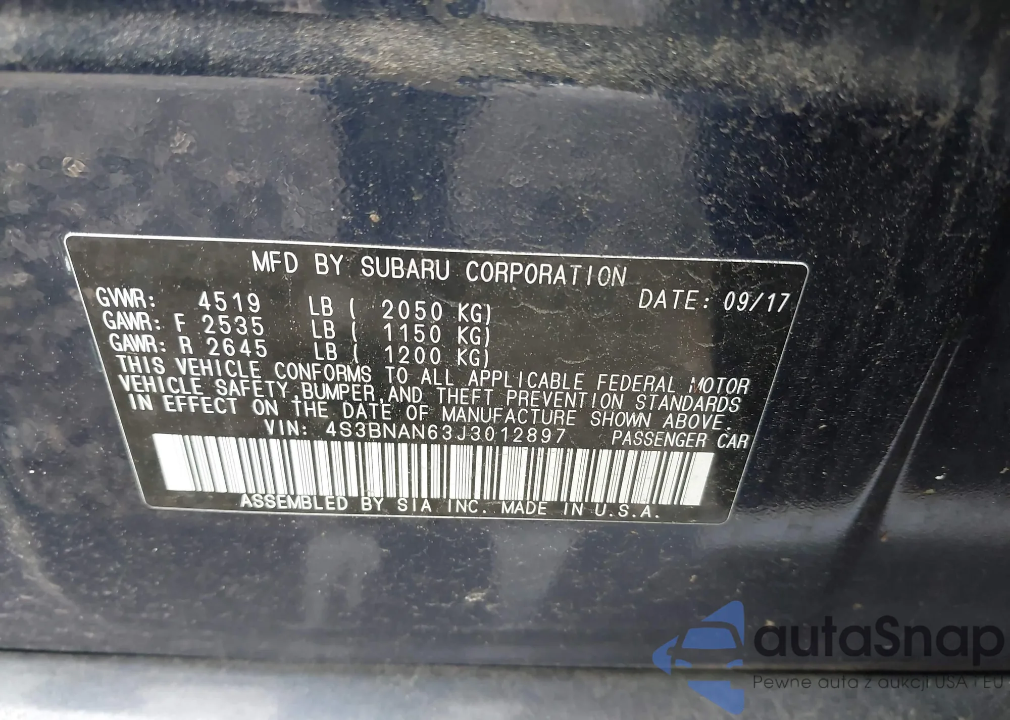 VIN: 4S3BNAN63J3012897