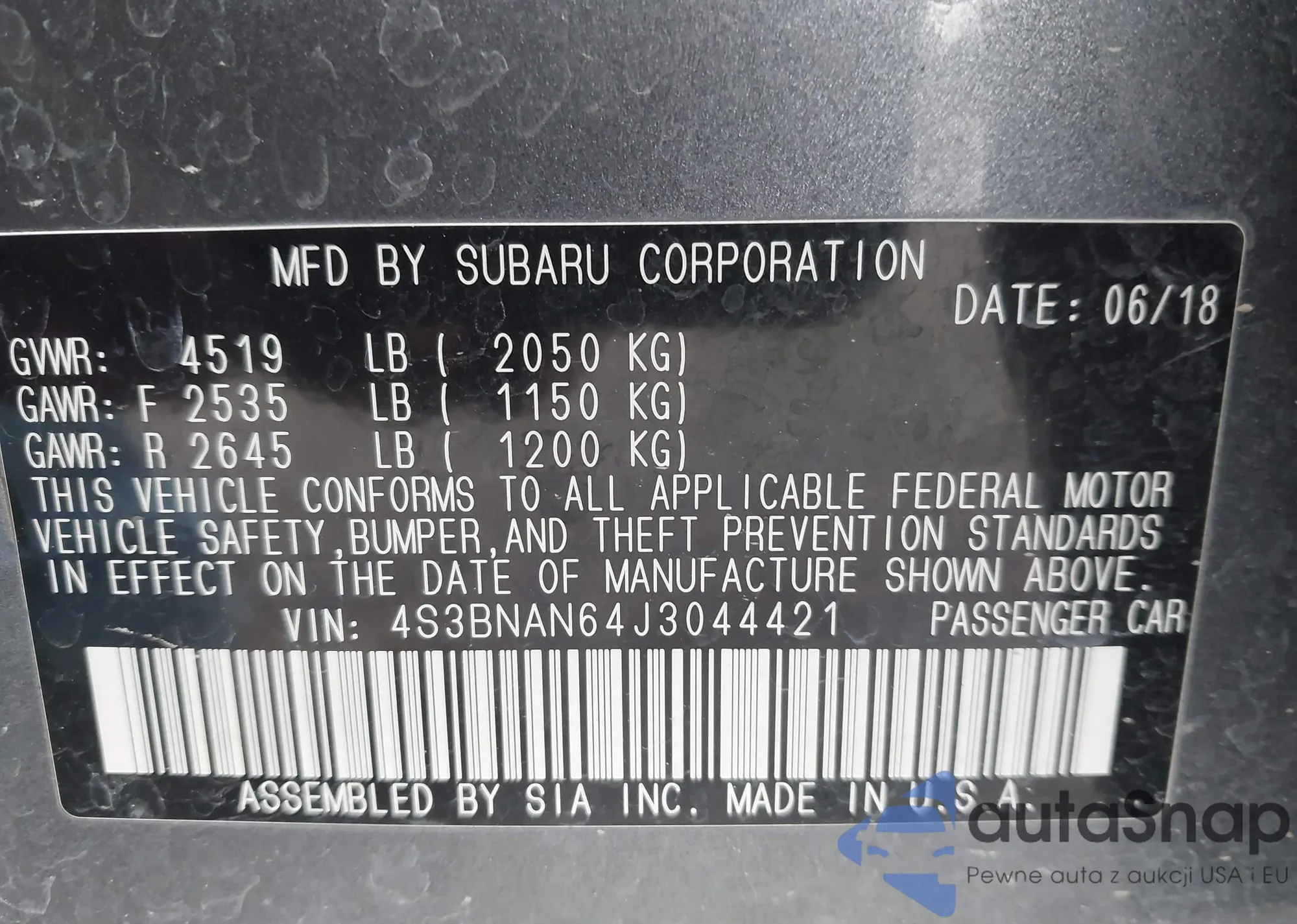 VIN: 4S3BNAN64J3044421