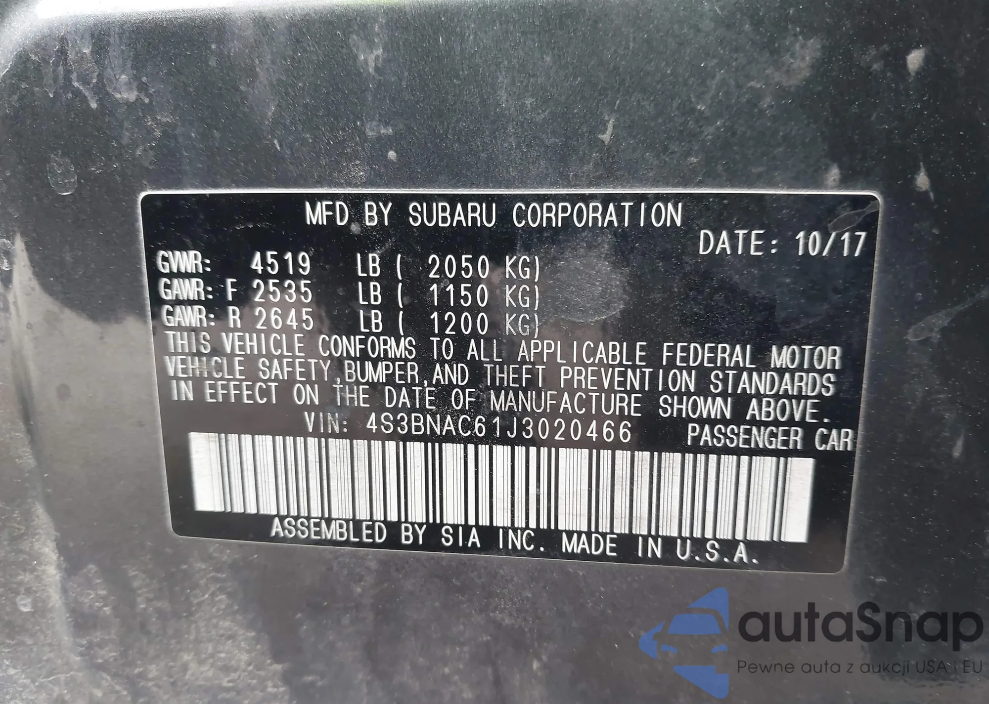 VIN: 4S3BNAC61J3020466