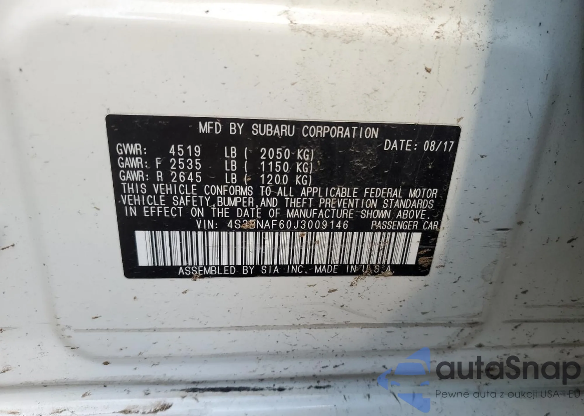 The car Subaru Legacy 2018 (VIN 4S3BNAF60J3009146) is sold by an unverified seller. We recommend checking the Carfax report and confirming registration possibilities before purchase.