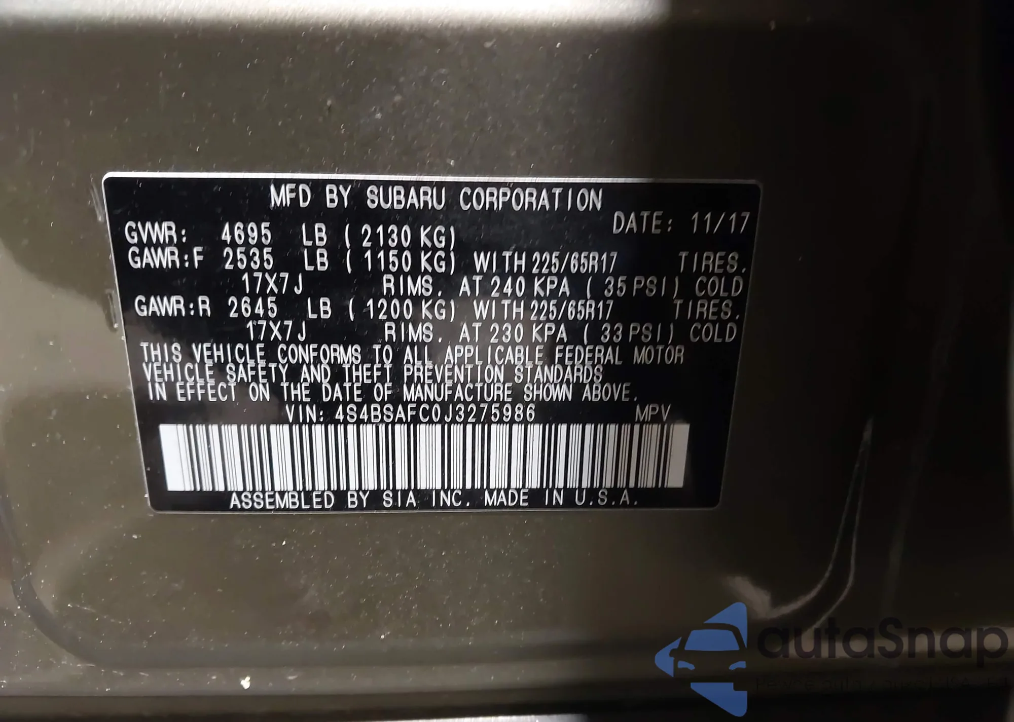 VIN: 4S4BSAFC0J3275986