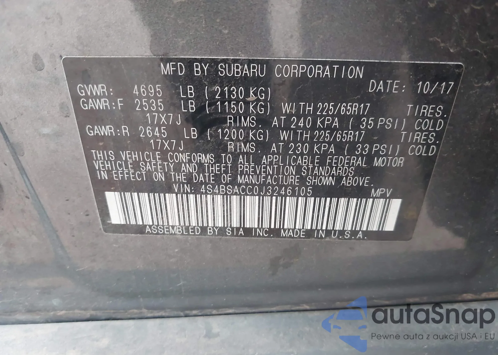 VIN: 4S4BSACC0J3246105