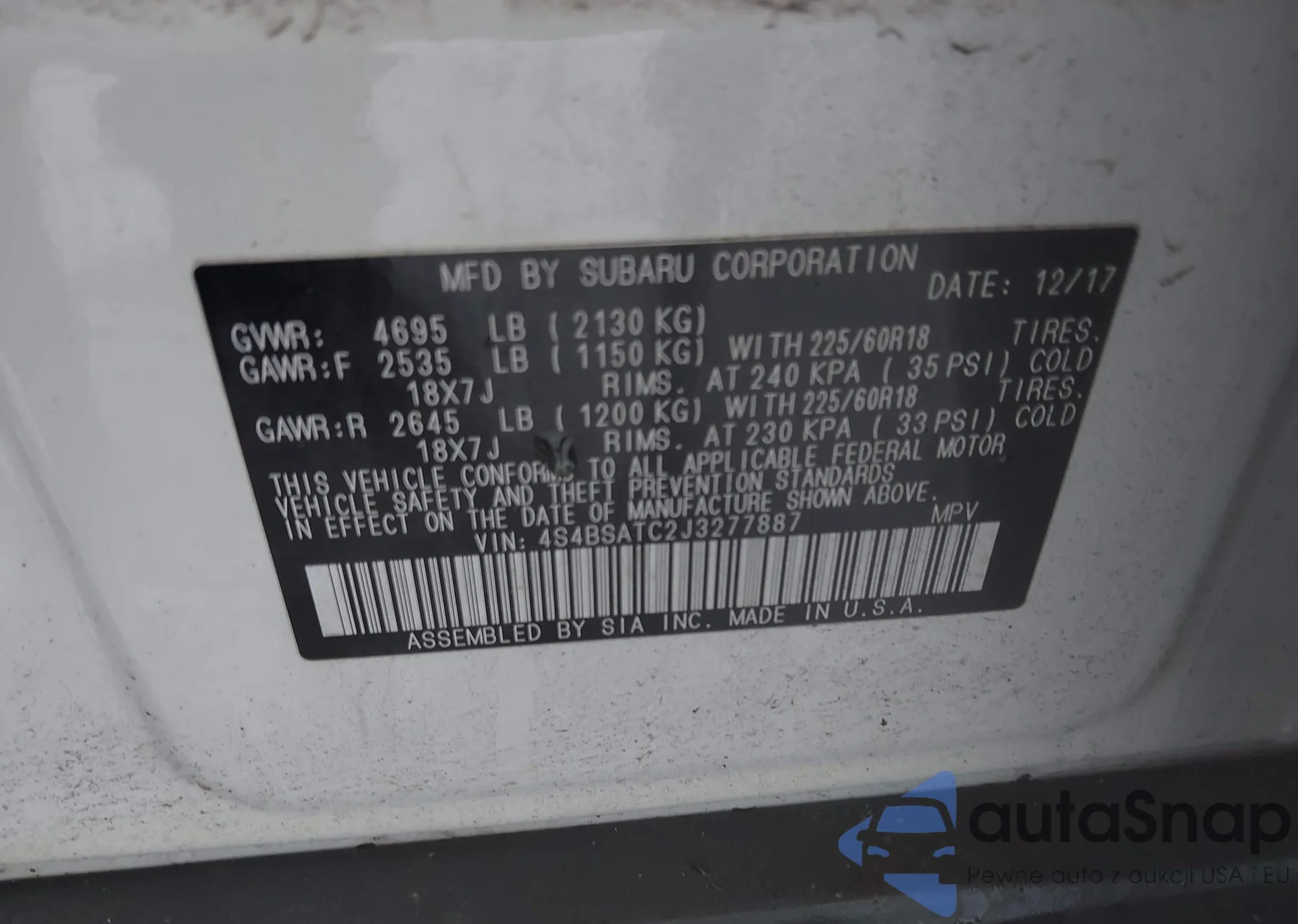 • VIN: 4S4BSATC2J3277887