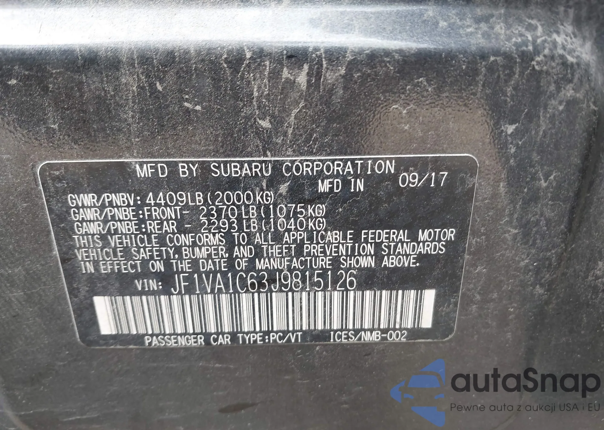 VIN: JF1VA1C63J9815126