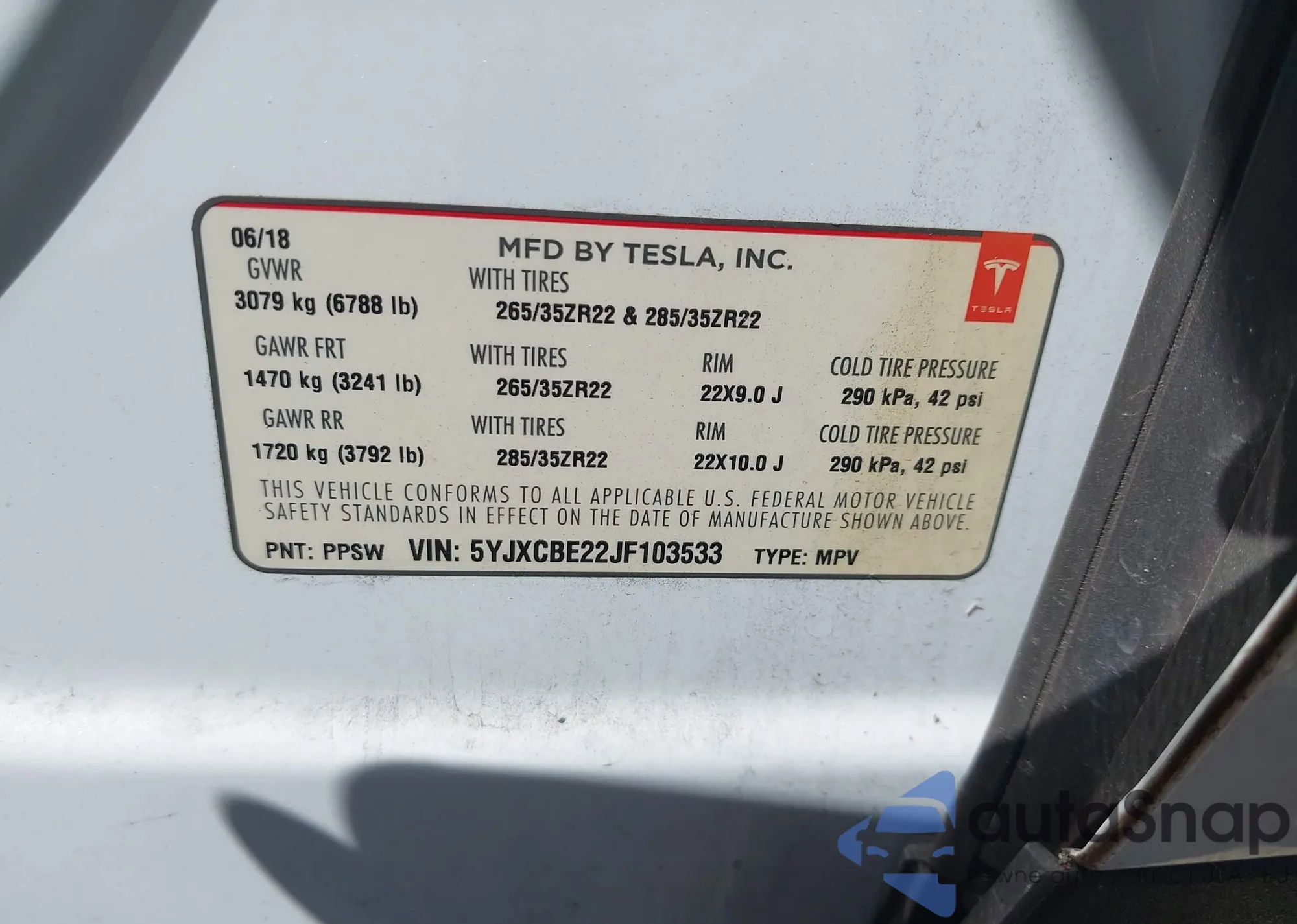 The car Tesla Model X 2018 (VIN 5YJXCBE22JF103533) has not been auctioned before. The documents are clean, and the mileage matches or is below the market average. Sold by an insurance company – we recommend purchase. Delivery to the port will take approx. 6–8 weeks.