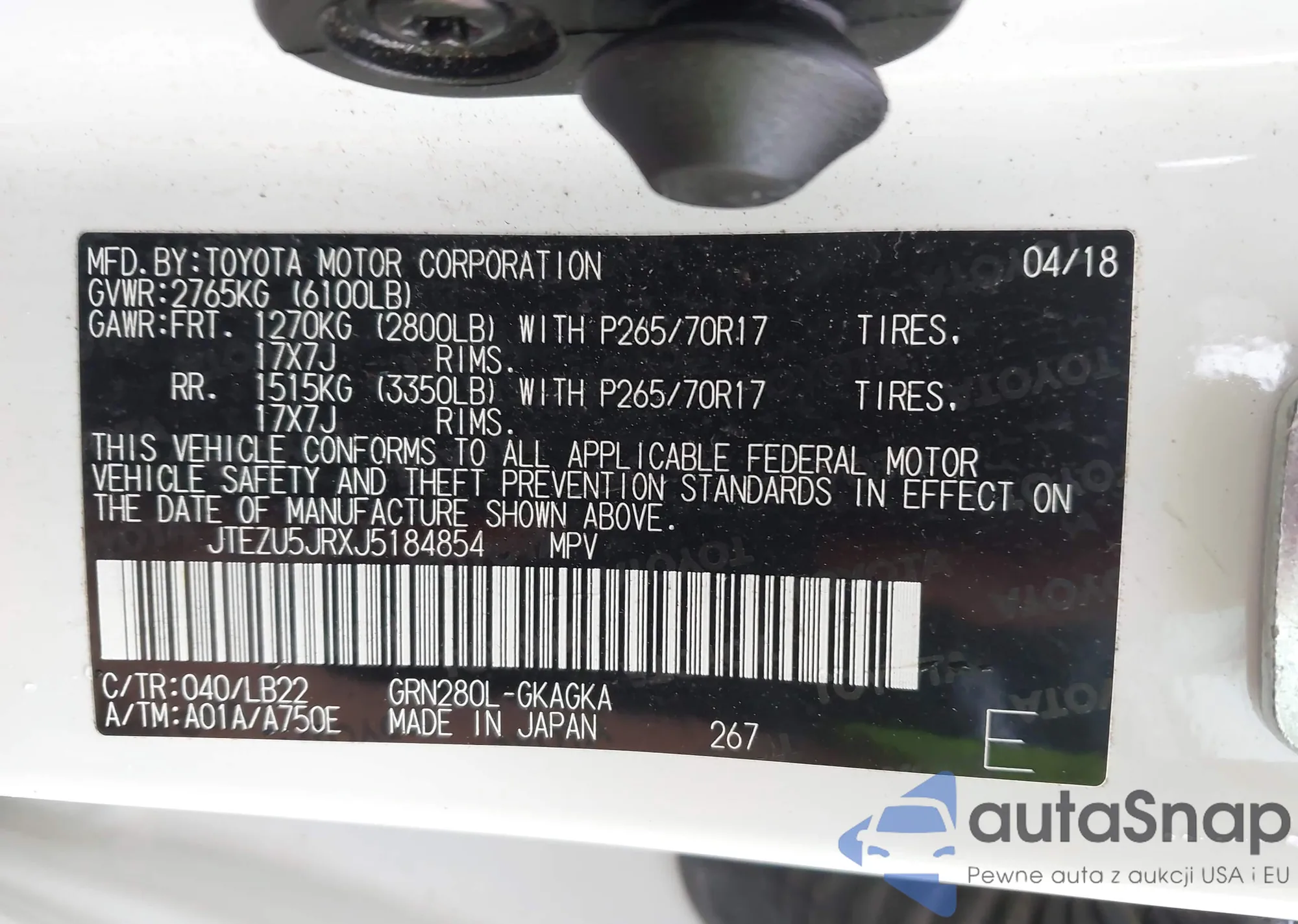 VIN: JTEZU5JRXJ5184854
