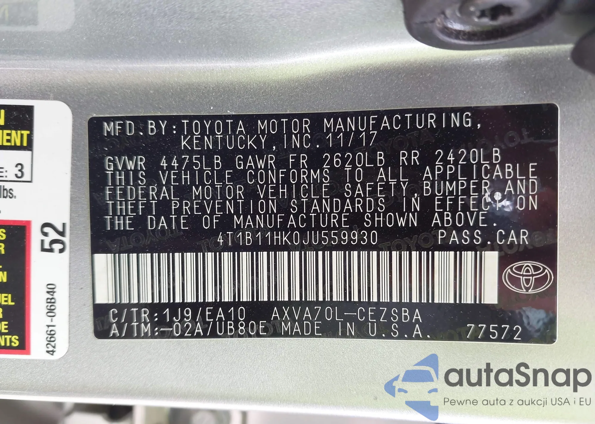 VIN: 4T1B11HK0JU559930
