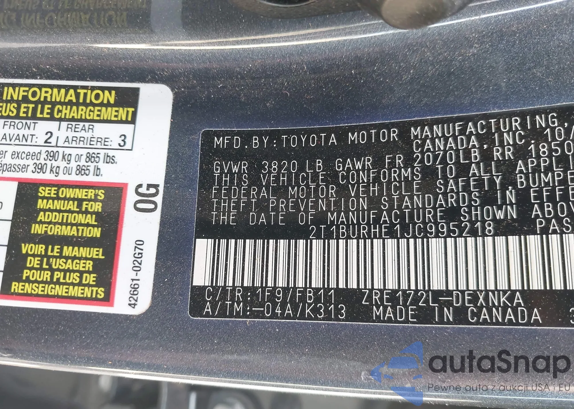 VIN: 2T1BURHE1JC995218