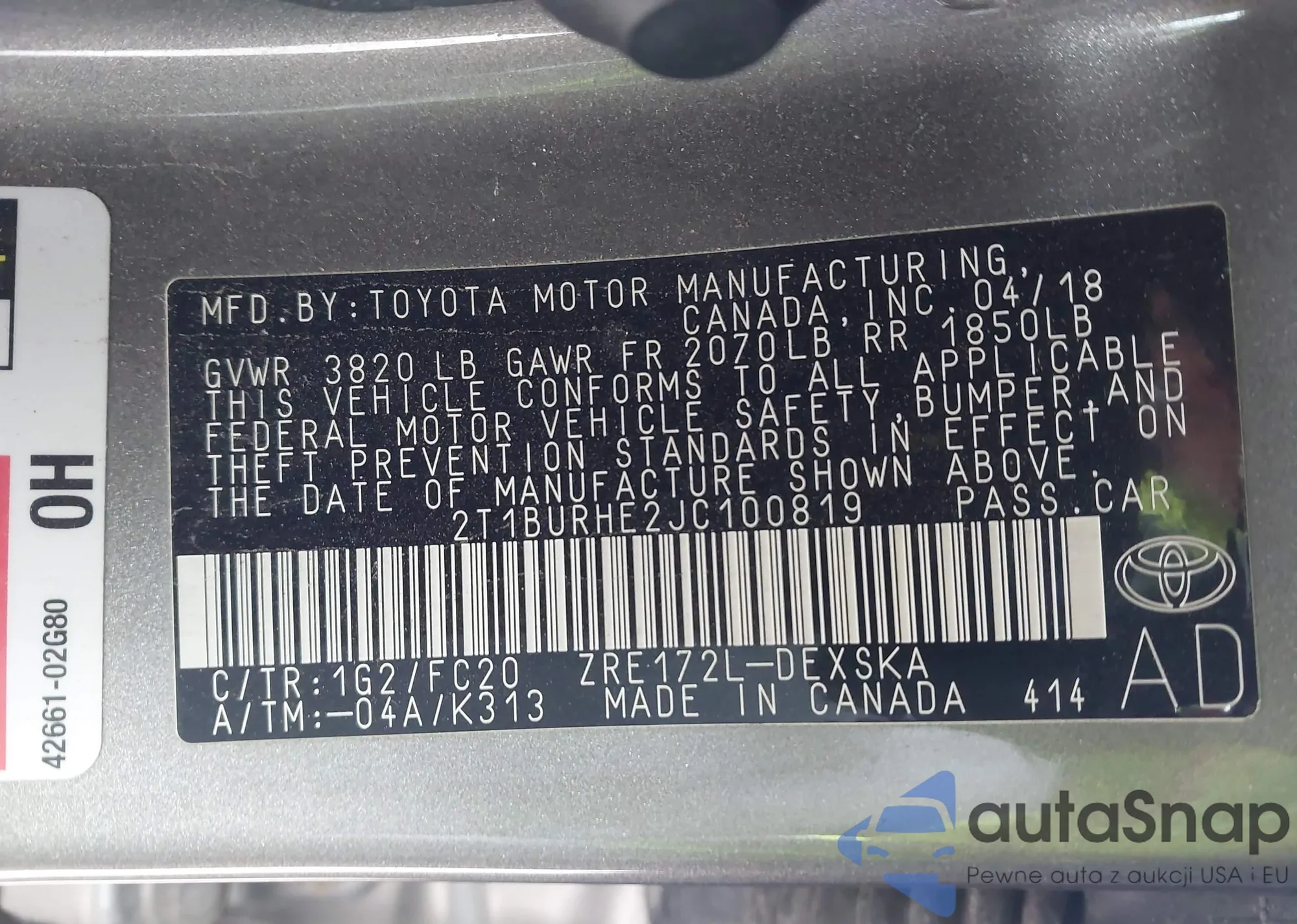 VIN: 2T1BURHE2JC100819