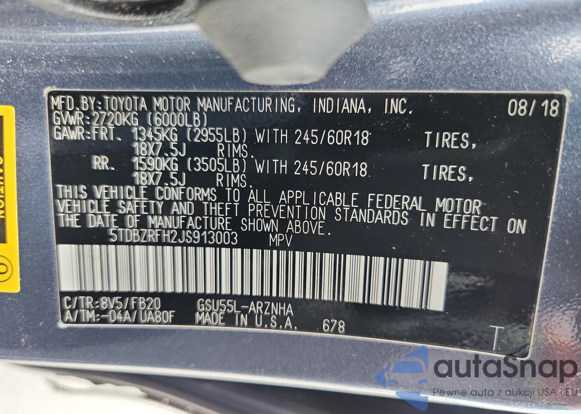 • VIN: 5TDBZRFH2JS913003