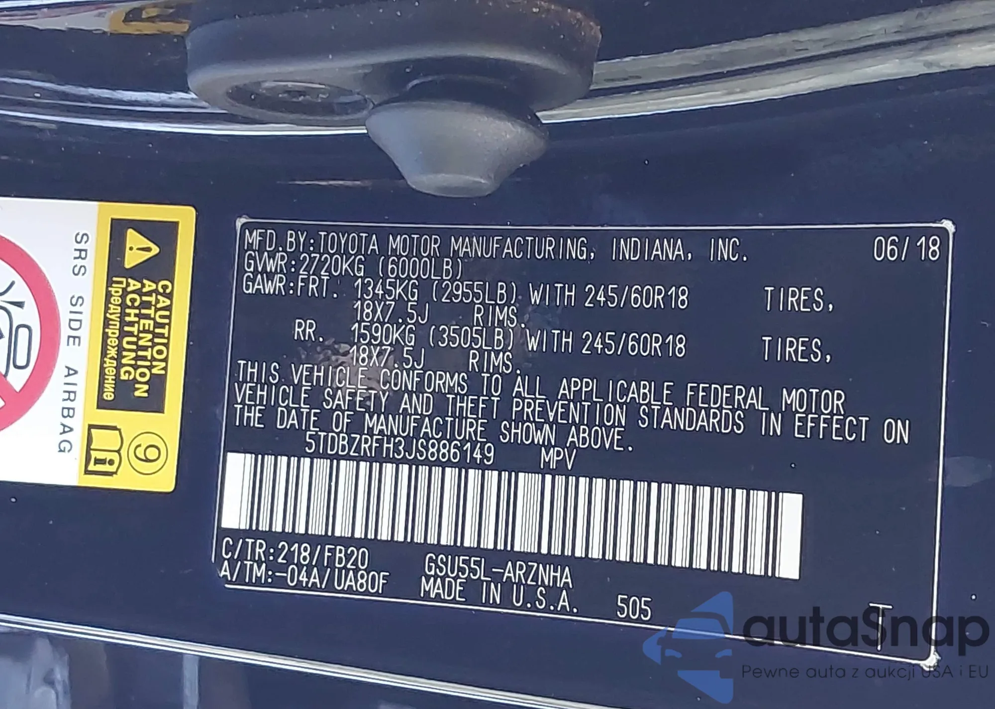 The car Toyota Highlander 2018 (VIN 5TDBZRFH3JS886149) has not been auctioned before. The documents are clean, and the mileage matches or is below the market average. Sold by an insurance company – we recommend purchase. Delivery to the port will take approx. 6–8 weeks.
