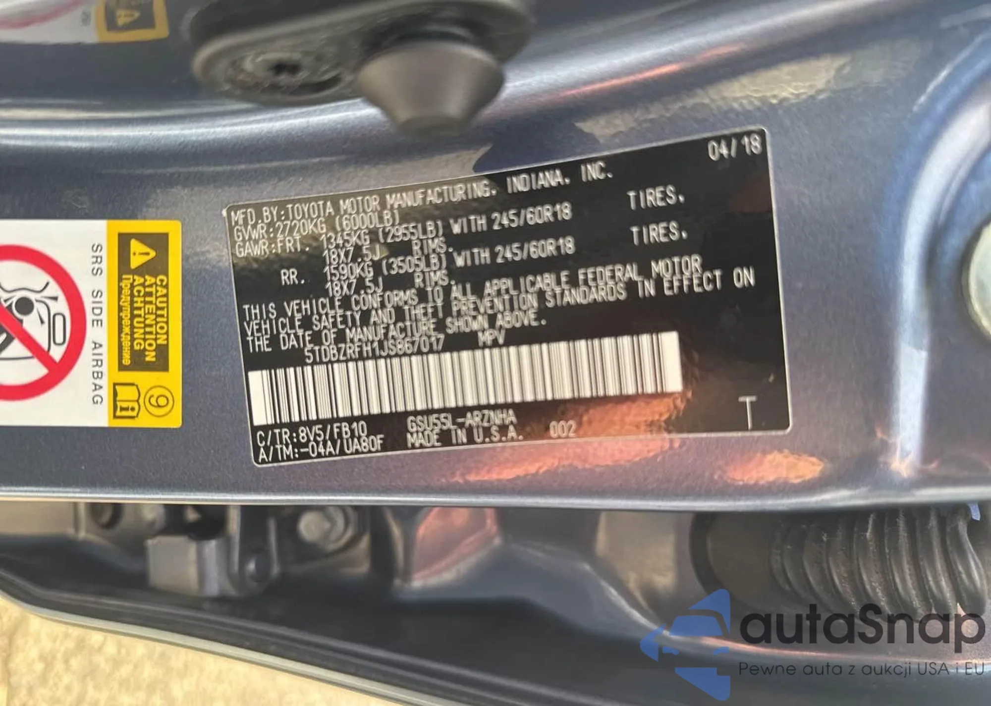 VIN: 5TDBZRFH1JS867017