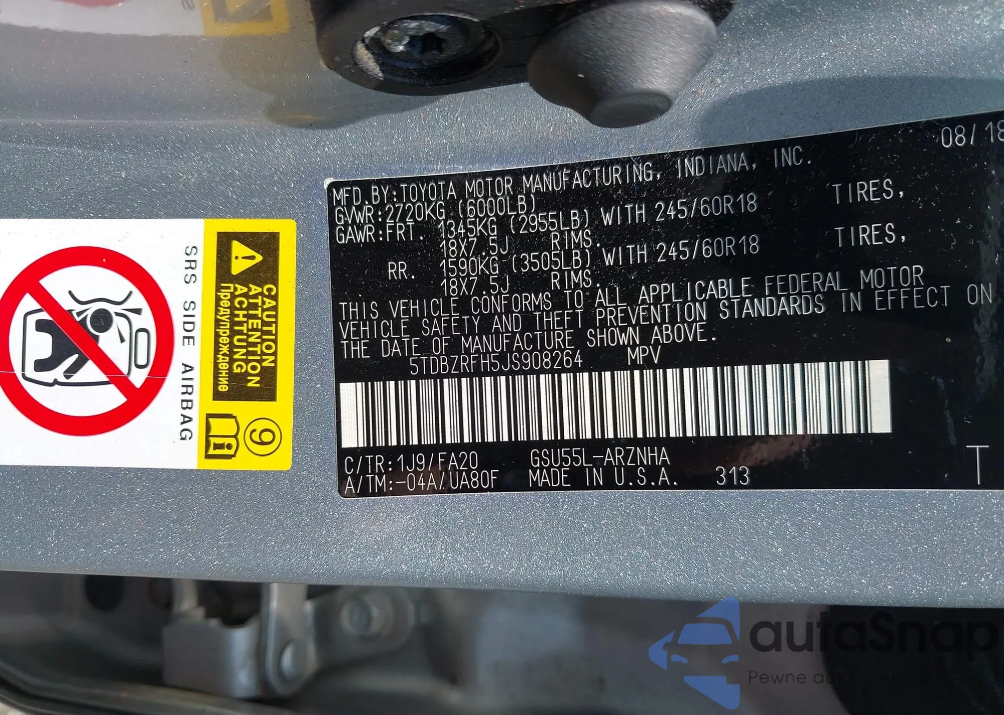 • VIN: 5TDBZRFH5JS908264