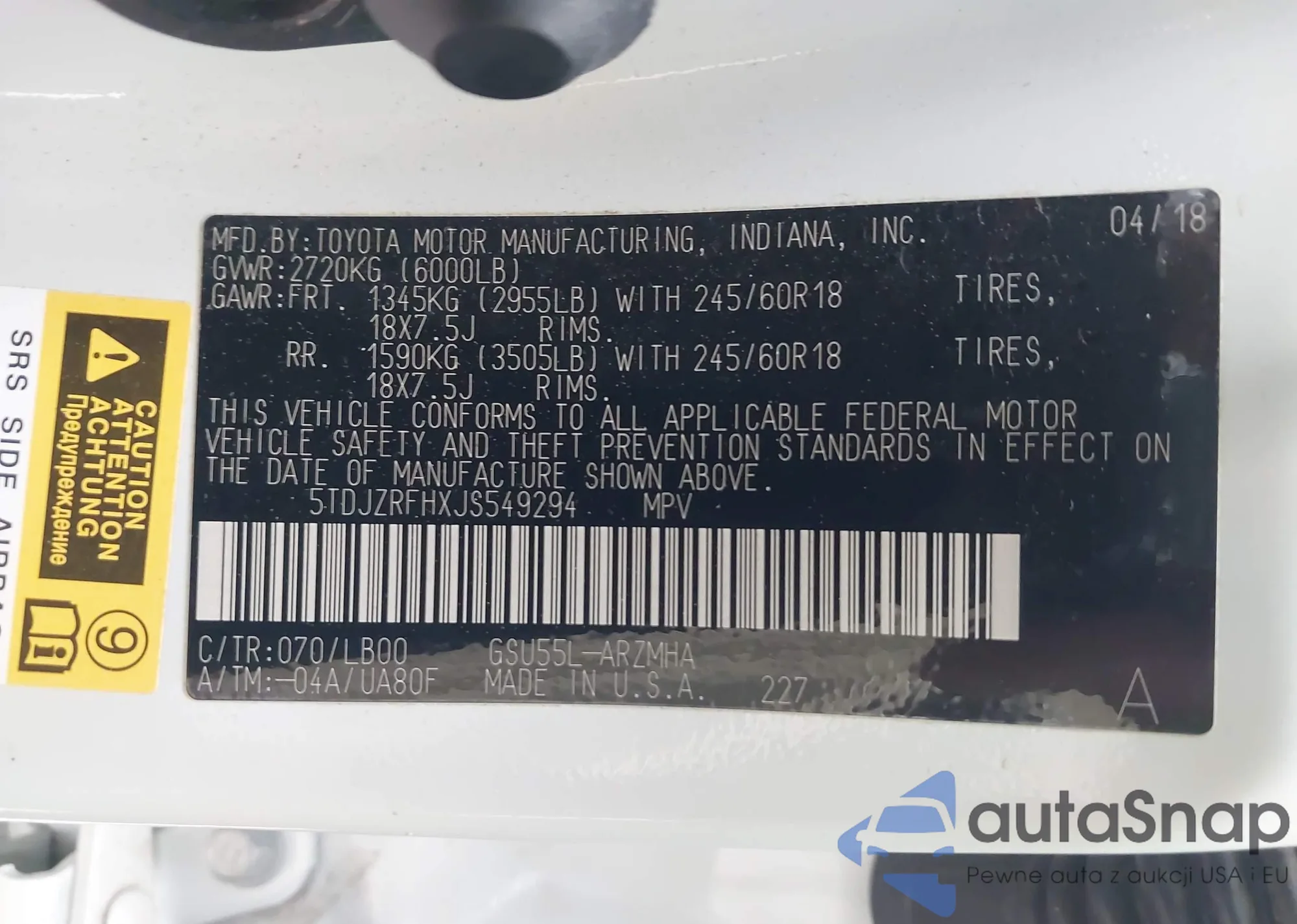 VIN: 5TDJZRFHXJS549294