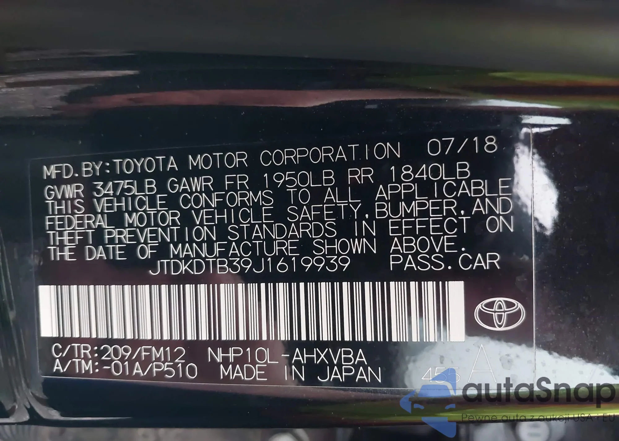 VIN: JTDKDTB39J1619939