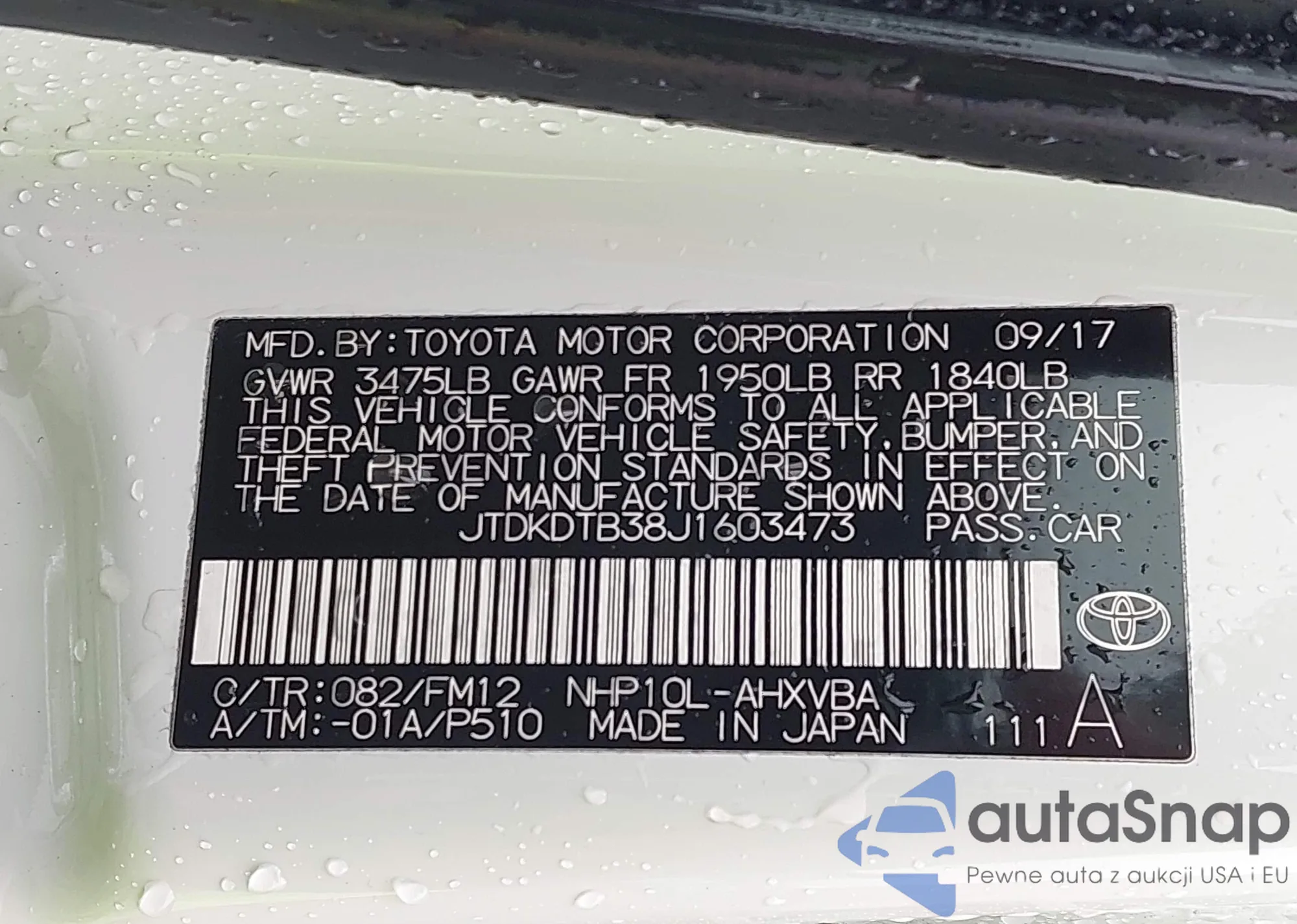 VIN: JTDKDTB38J1603473