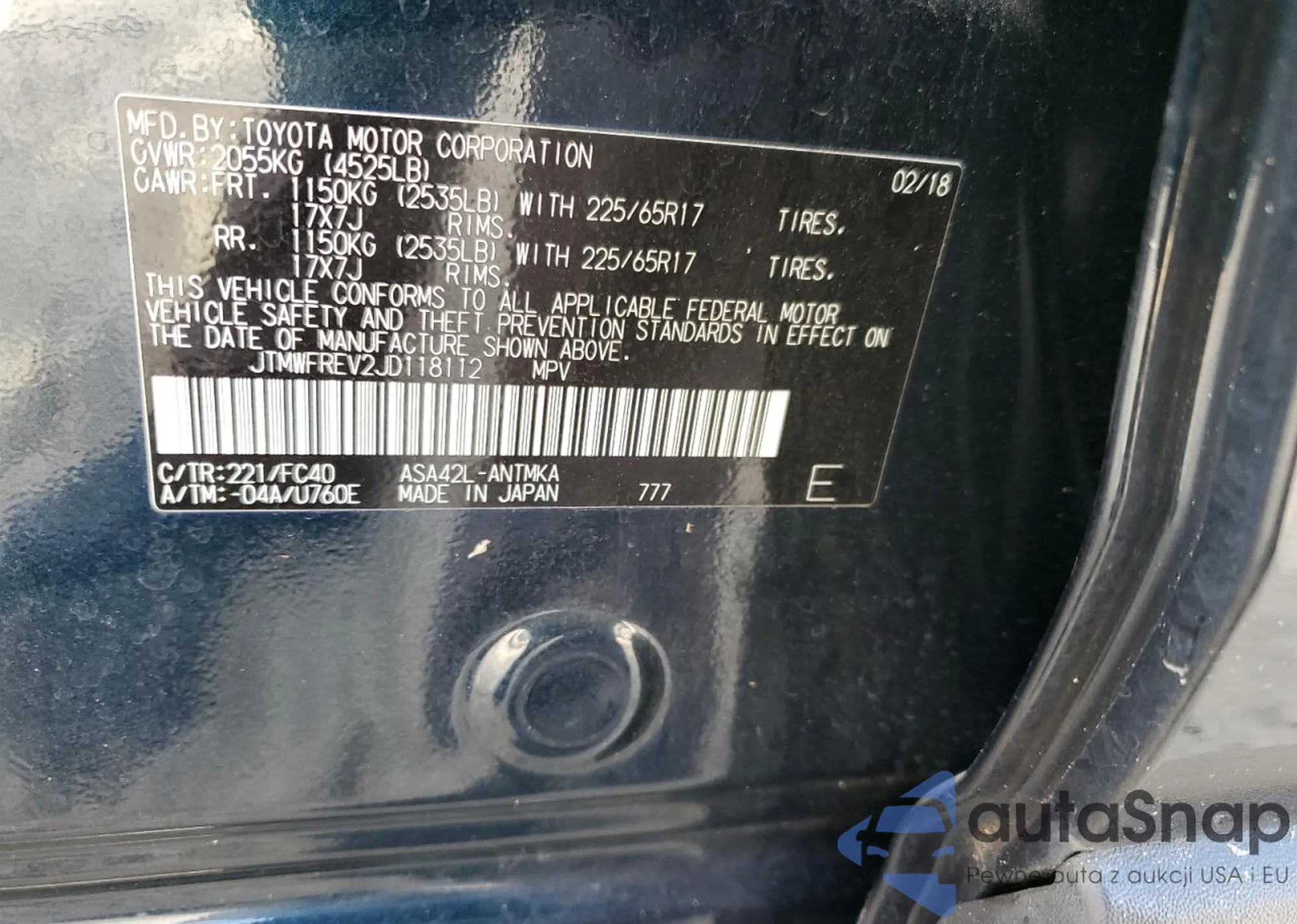 VIN: JTMWFREV2JD118112