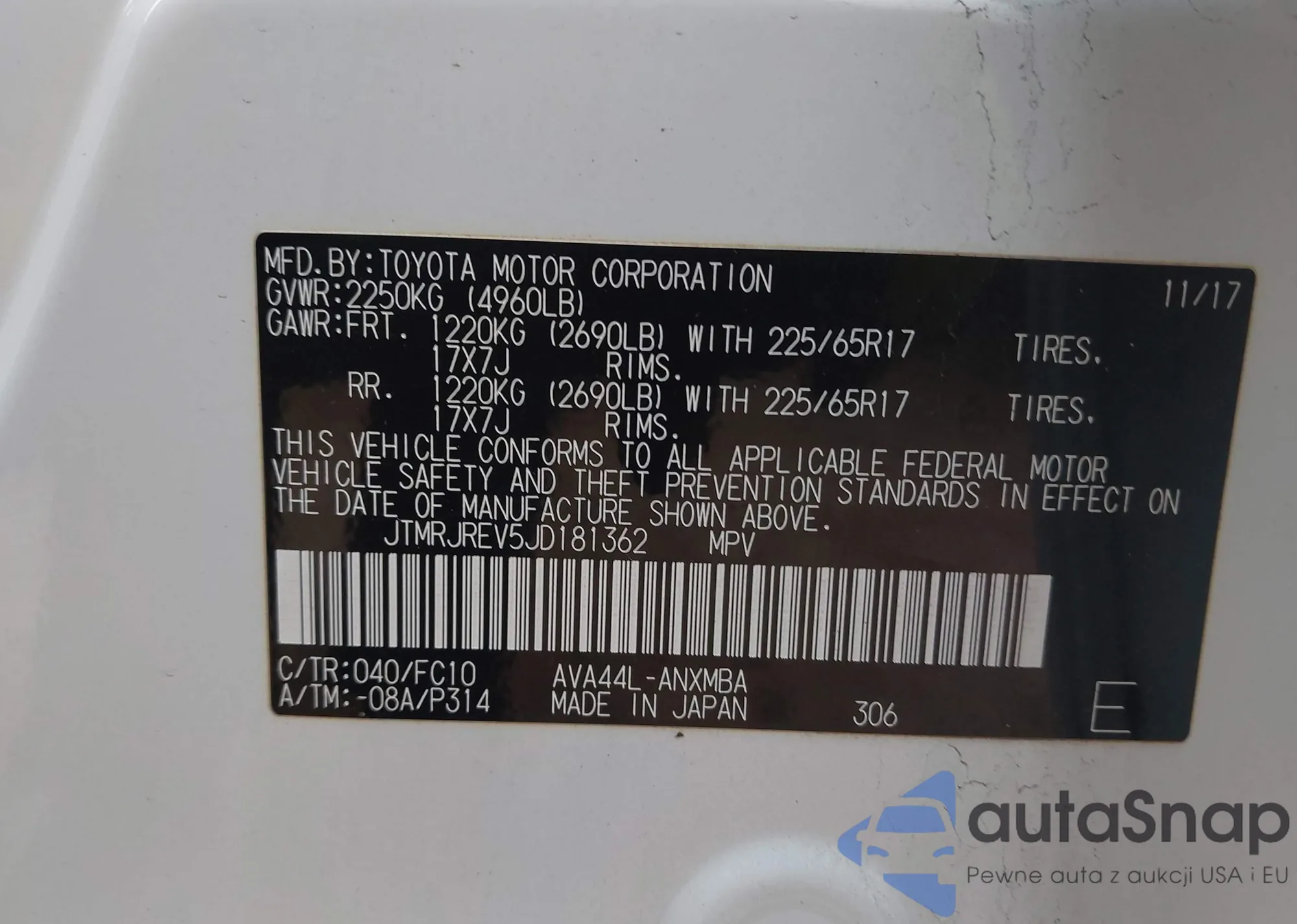 VIN: JTMRJREV5JD181362