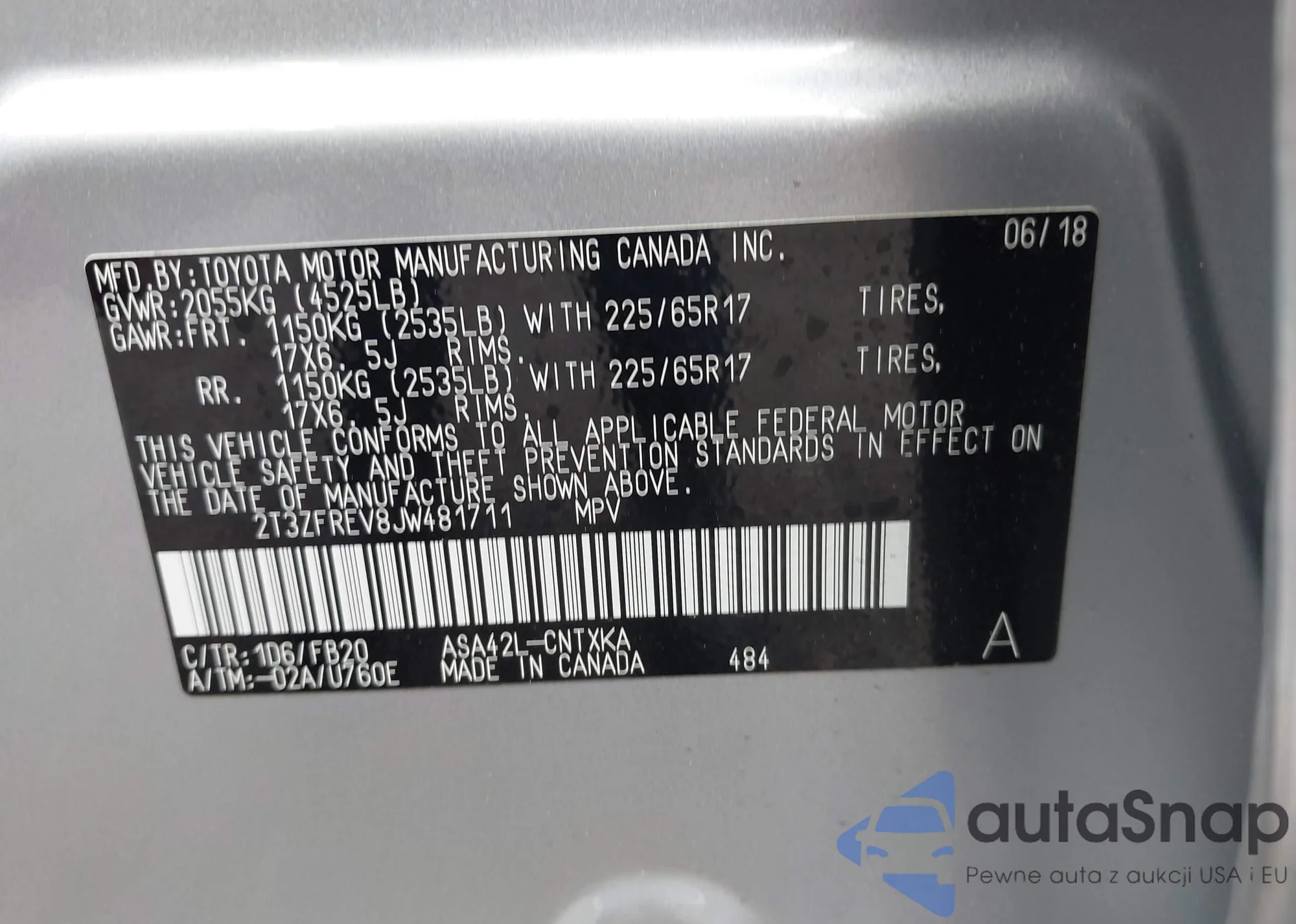 VIN: 2T3ZFREV8JW481711