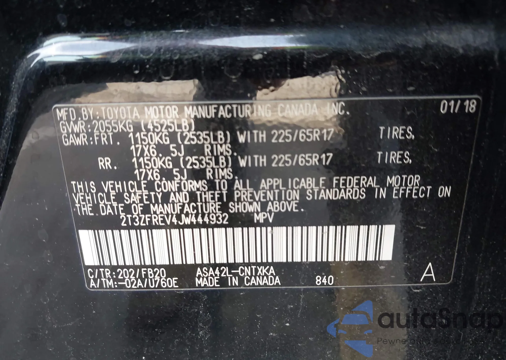 VIN: 2T3ZFREV4JW444932